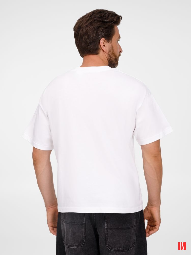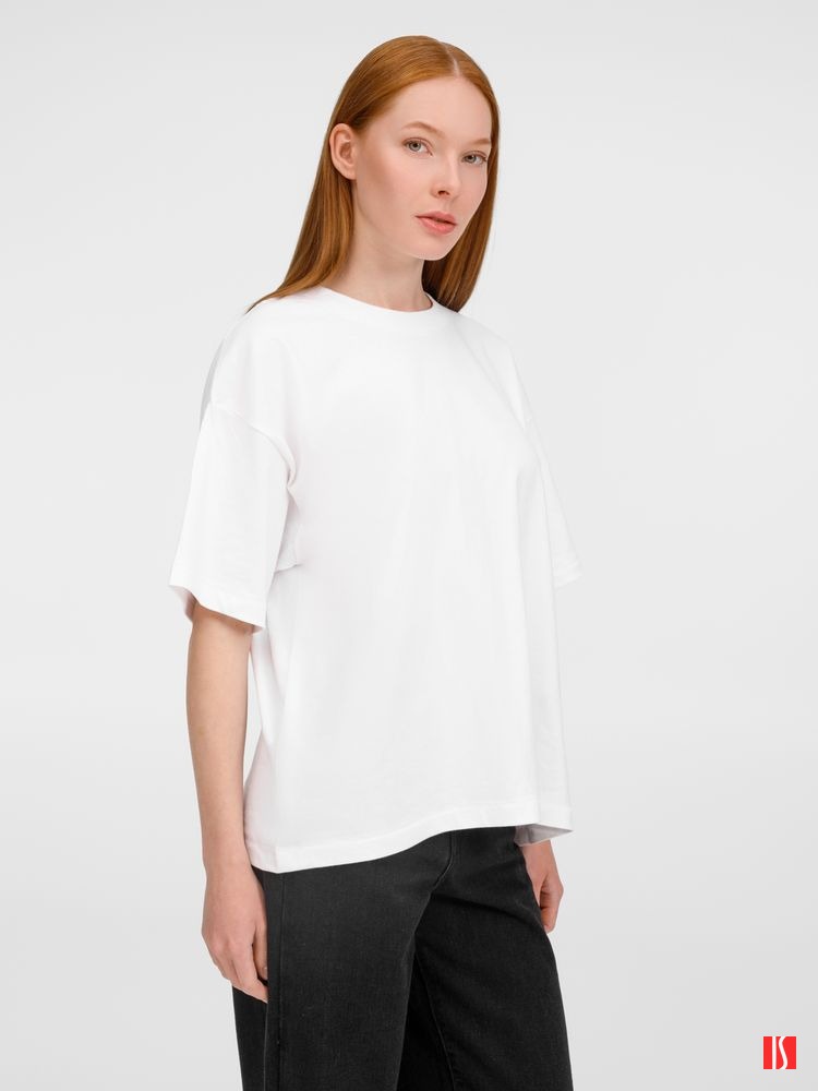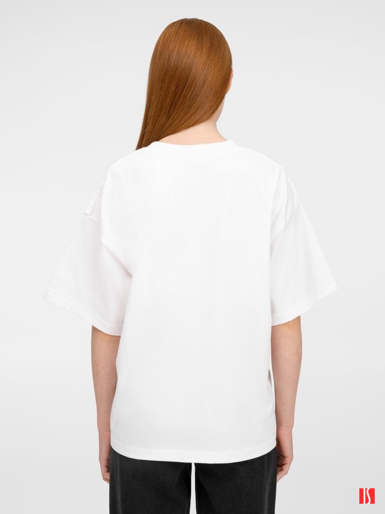 Заказать с нанесением логотипа от компании «Синтезис». Футболка оверсайз унисекс с круглым вырезом и без боковых швов. Выполнена из смеси переработанного и обычного хлопка. Благодаря повышенной плотности отлично держит форму.