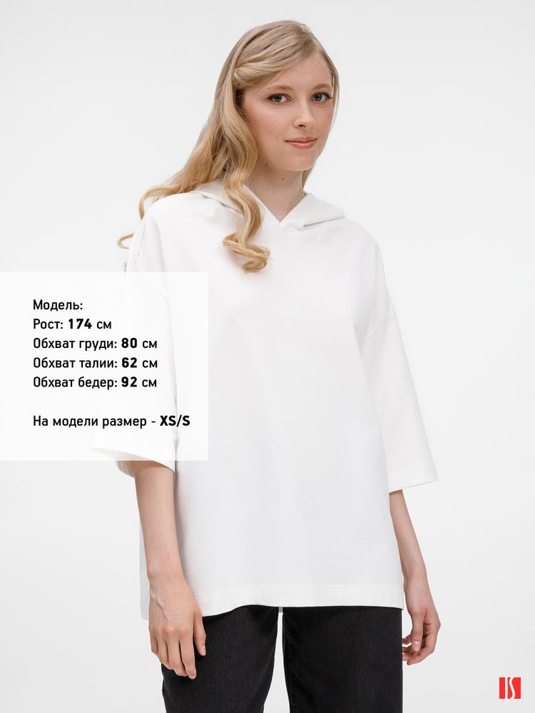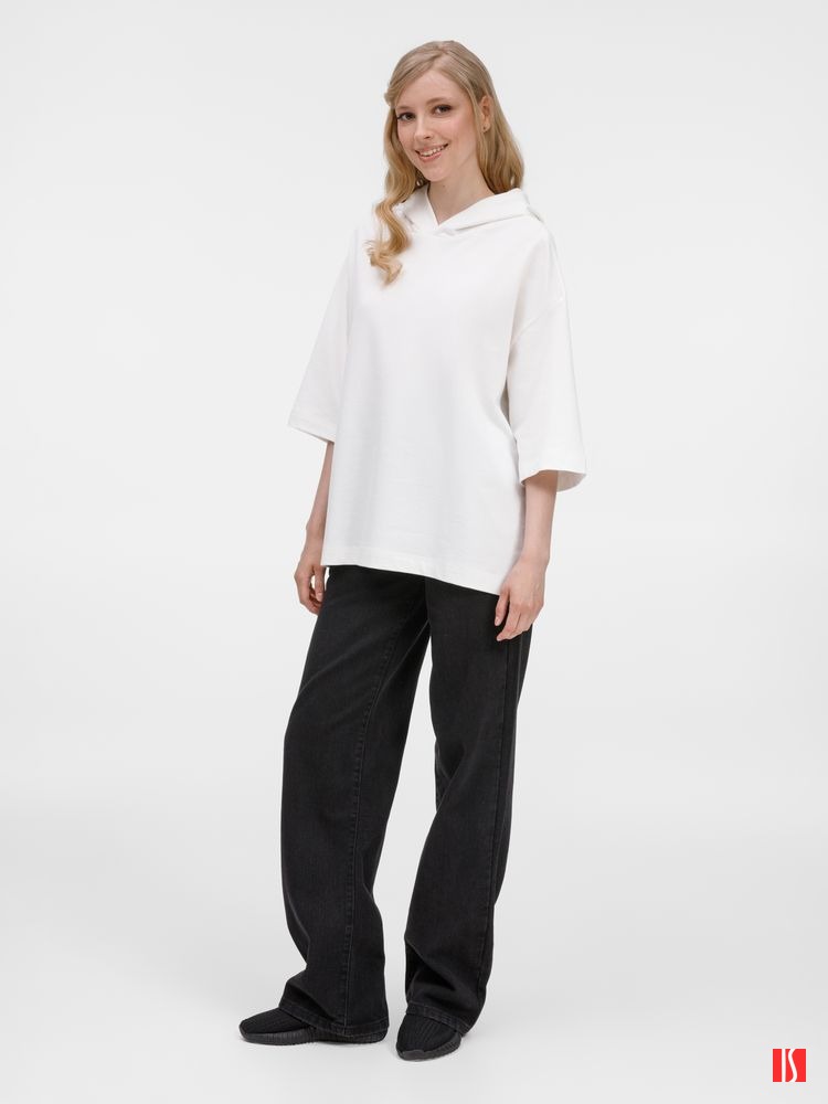 Футболка оверсайз унисекс с капюшоном Neofit, молочно-белая