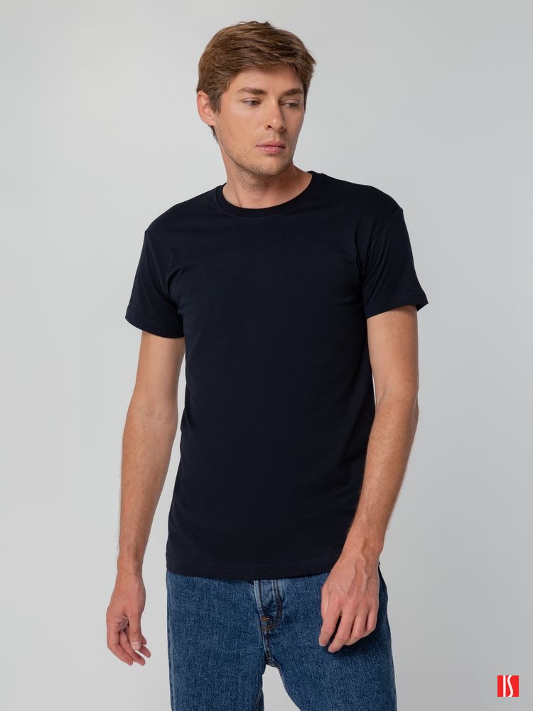 Заказать с нанесением логотипа от компании «Синтезис». Футболка унисекс прямого силуэта без боковых швов (размеры S–4XL) или с боковыми швами (размер 5XL). Активное крашение полотна — изделие сохраняет цвет надолго.
