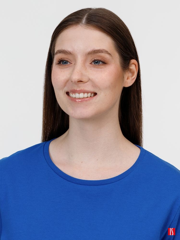 Заказать с нанесением логотипа от компании «Синтезис». Кроеная футболка приталенного силуэта с круглым вырезом.