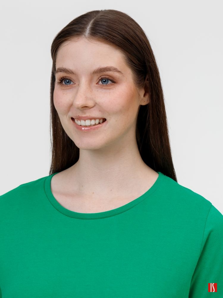 Заказать с нанесением логотипа от компании «Синтезис». Кроеная футболка приталенного силуэта с круглым вырезом.