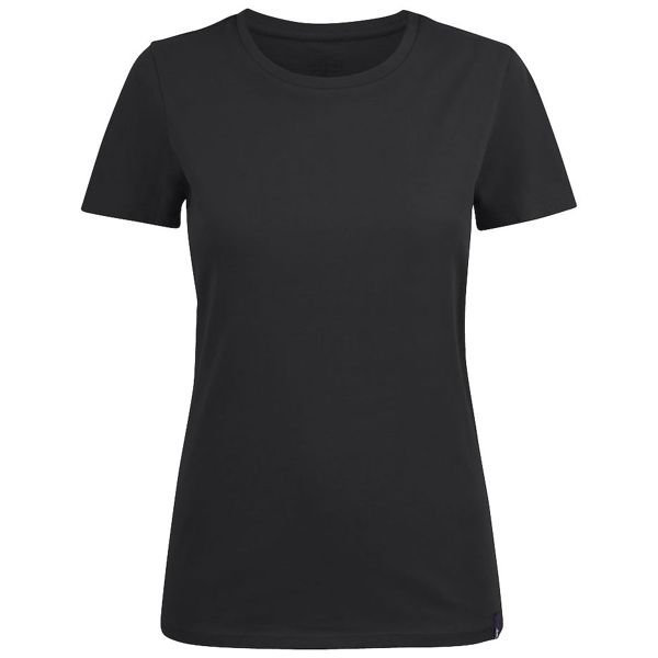 Заказать с нанесением логотипа от компании «Синтезис». Женская футболка с круглым вырезом. Двухслойная резинка предохраняет воротник от деформации после стирки.