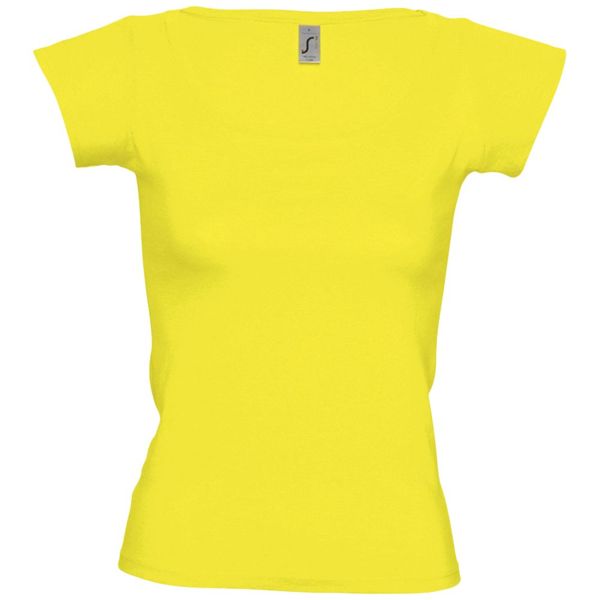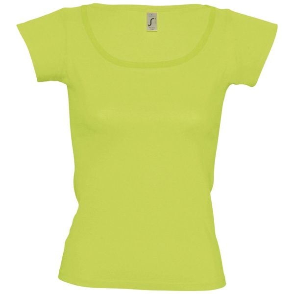 Заказать с нанесением логотипа от компании «Синтезис». Футболка женственного приталенного силуэта с американской проймой и глубоким вырезом, отделанным обтачкой из джерси. Двойная прострочка на вороте спереди, на рукавах и по низу.