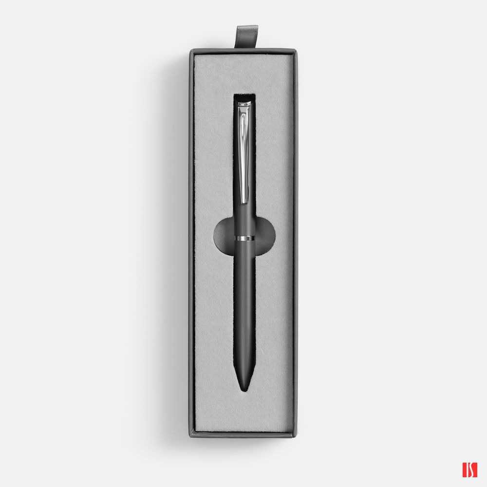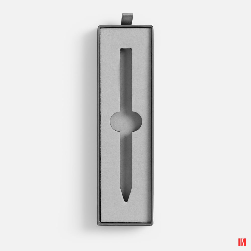Картонный футляр с покрытием софт-тач с флокированным ложементом для одной ручки.