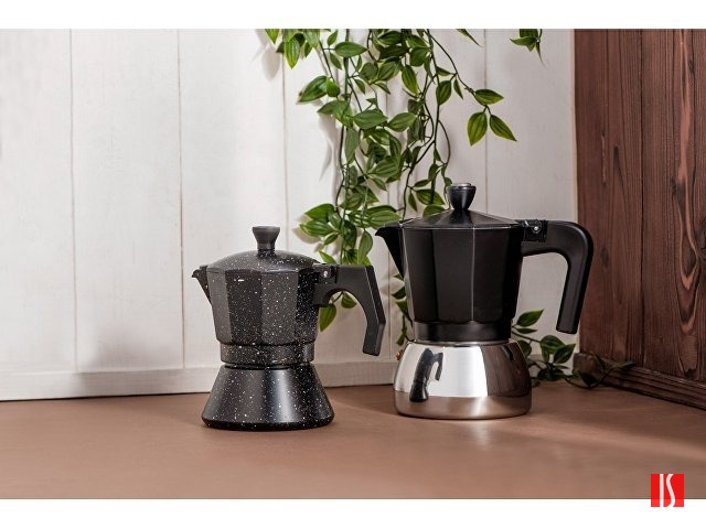 Заказать с нанесением логотипа от компании «Синтезис». Верхний резервуар этой гейзерной кофеварки выполнен из алюминия, нижний — из высококачественной нержавеющей стали 430 марки, которая обеспечивает модели совместимость со всеми видами плит, включая индукционные. При помощи этой гейзерной кофеварки вы сможете приготовить эспрессо и напитки на его основе.