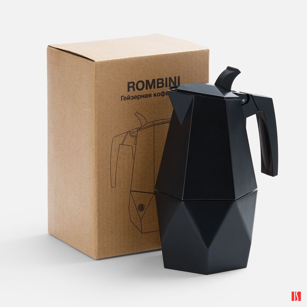 Rombini — гейзерная кофеварка с многогранным характером, достойная звания арт-объекта для всех ценителей кофе и современного дизайна. Компактный формат на три чашки — идеальный спутник утренних вдохновений и рабочих пауз в небольшом офисе.