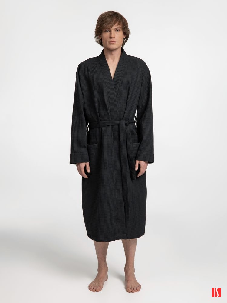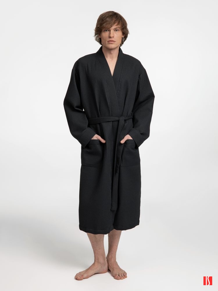 Халат вафельный Kimono, черный