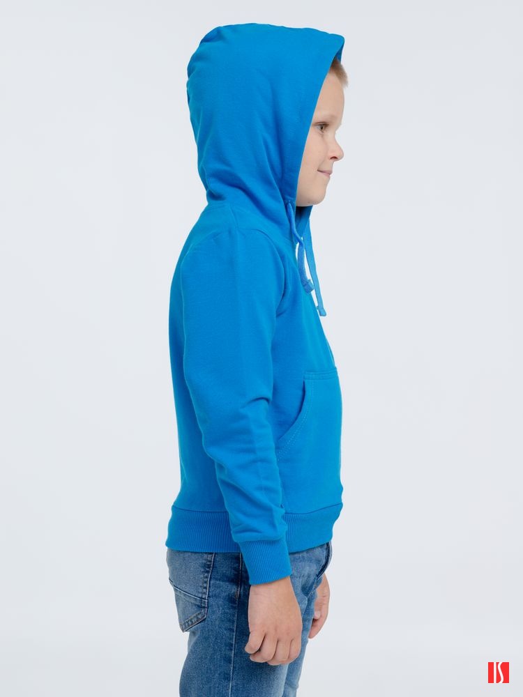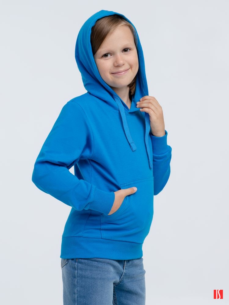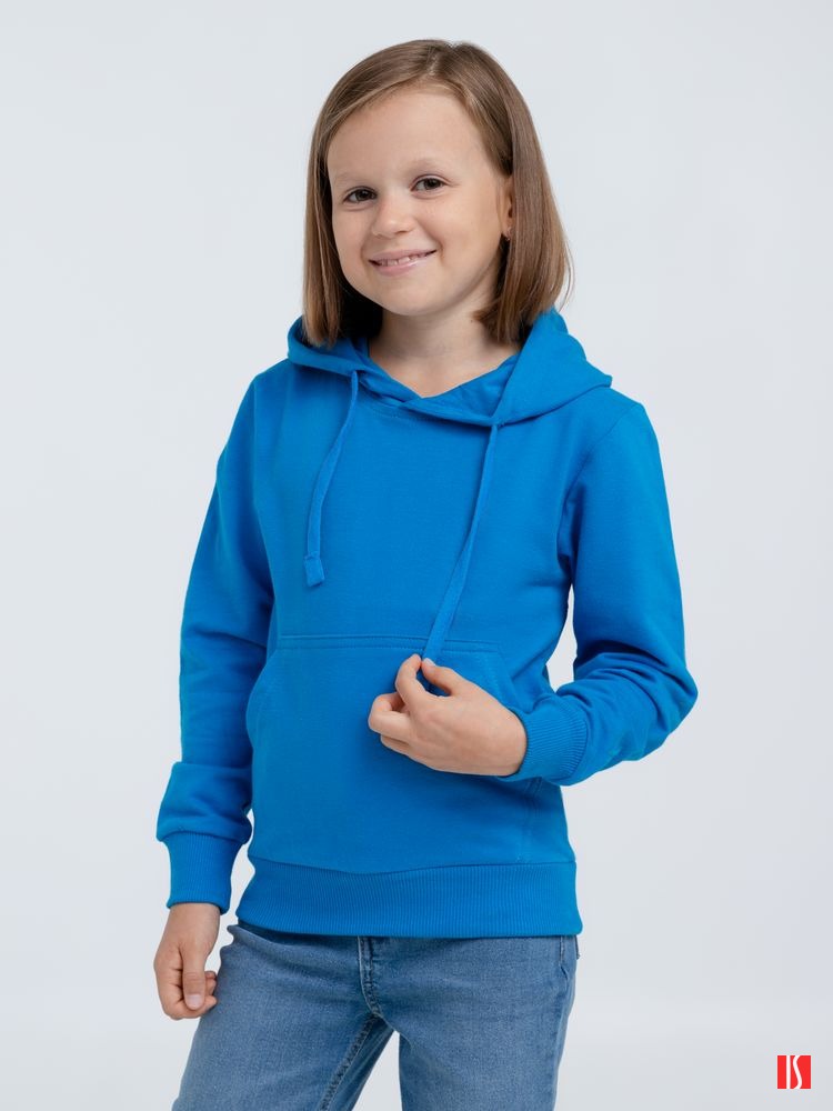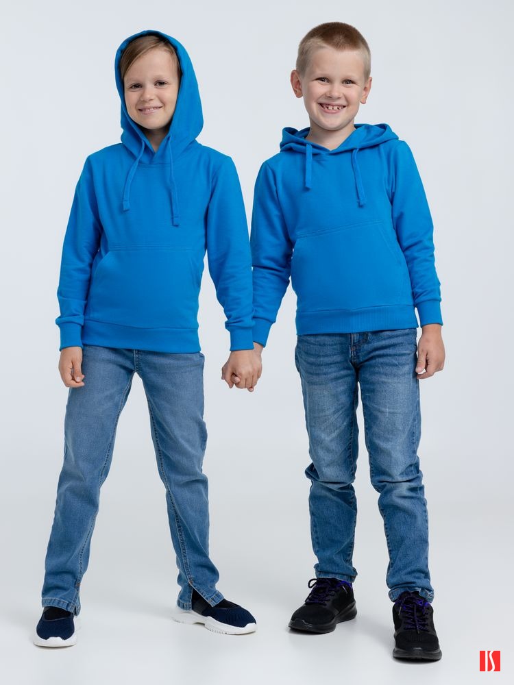 Заказать с нанесением логотипа от компании «Синтезис». Легкое детское худи с карманом-кенгуру. Выполнено из высококачественного полотна, которое прошло активное крашение, предварительную термоусадку и обработку энзимами.