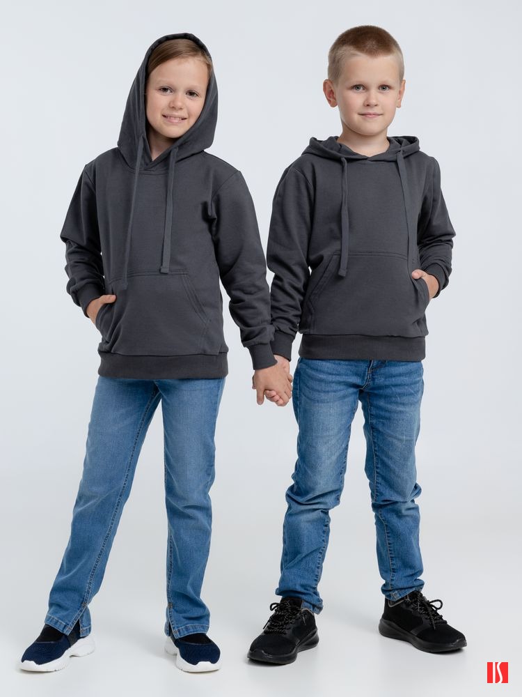 Заказать с нанесением логотипа от компании «Синтезис». Легкое детское худи с карманом-кенгуру. Выполнено из высококачественного полотна, которое прошло активное крашение, предварительную термоусадку и обработку энзимами.
