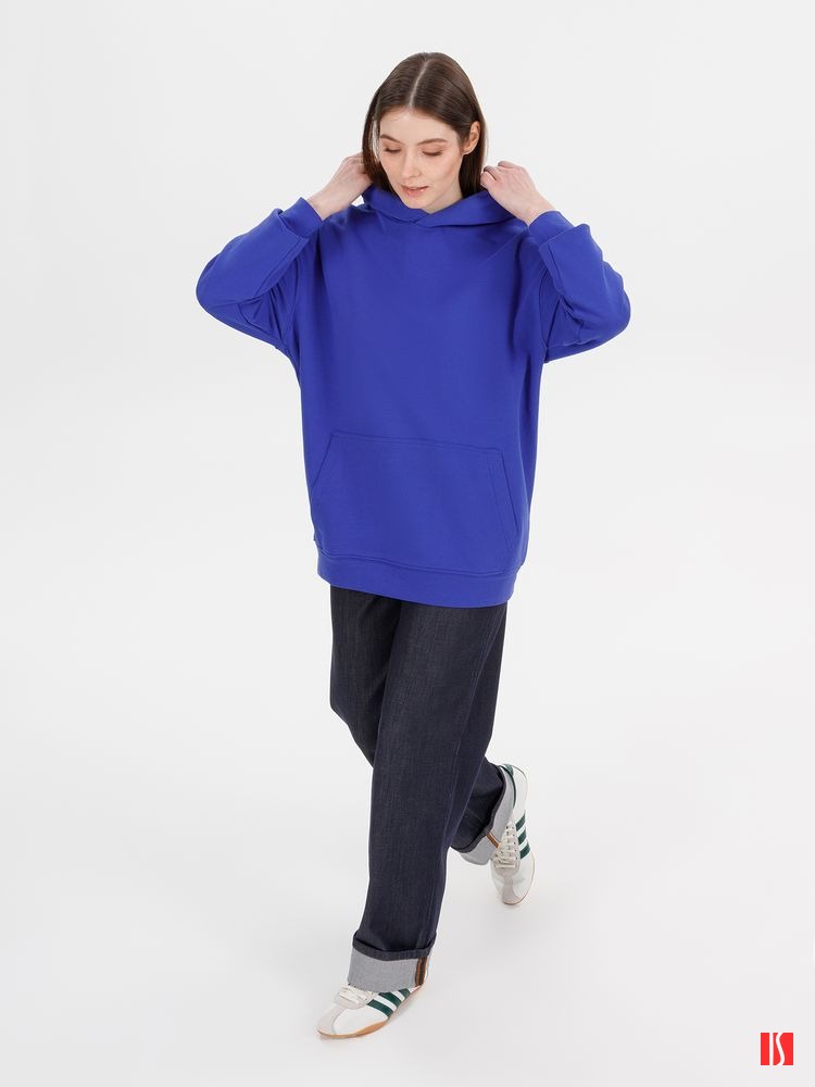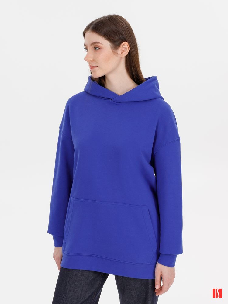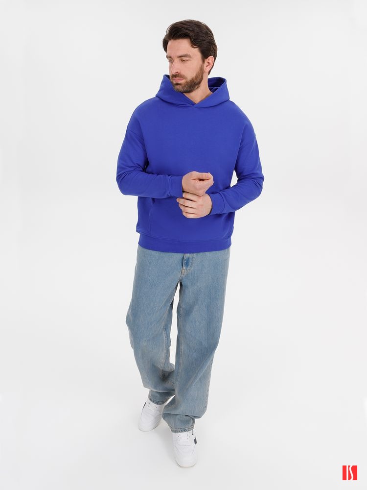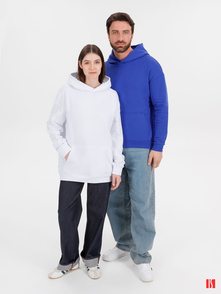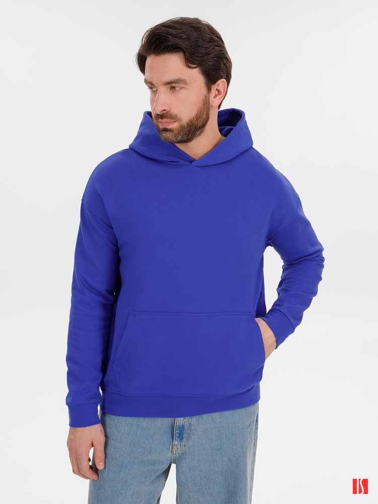 Заказать с нанесением логотипа от компании «Синтезис». Худи унисекс со спущенным плечом и карманом-кенгуру расслабленного силуэта.