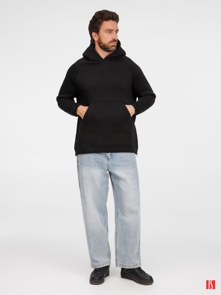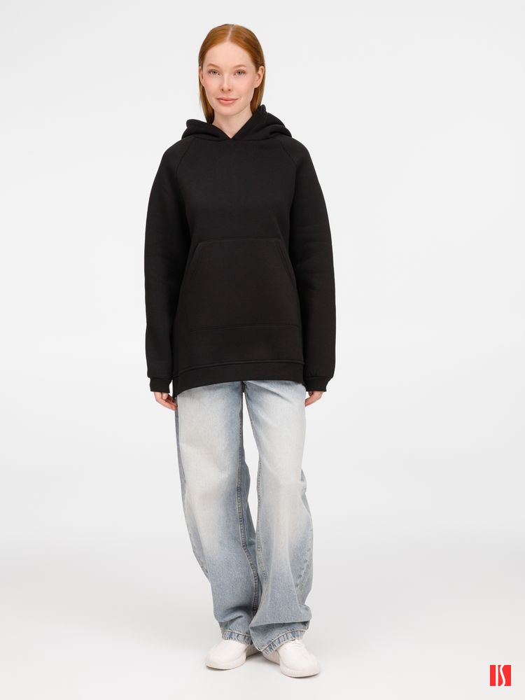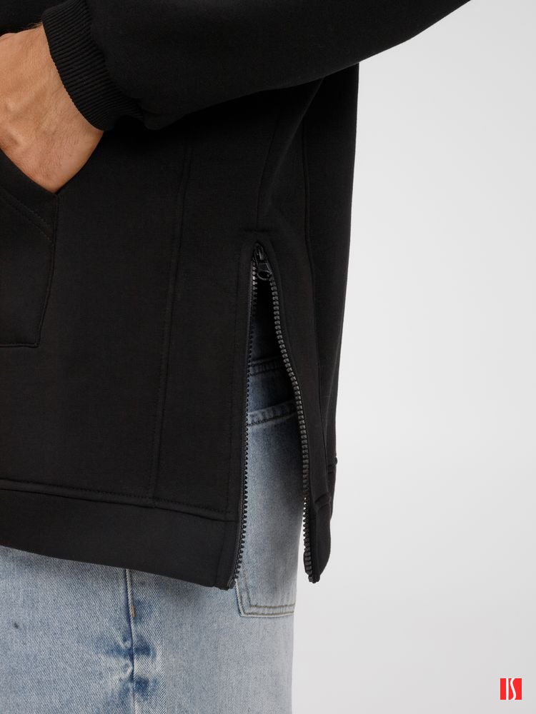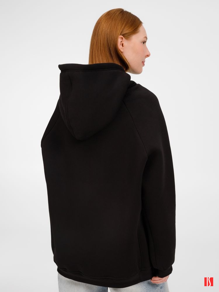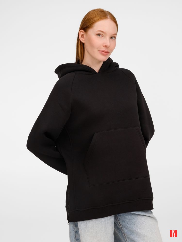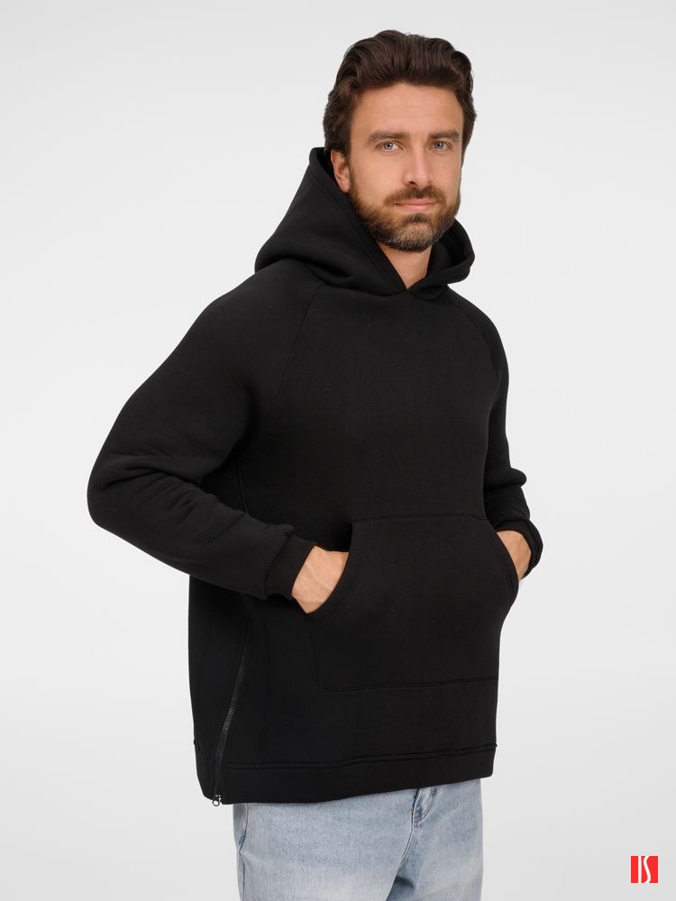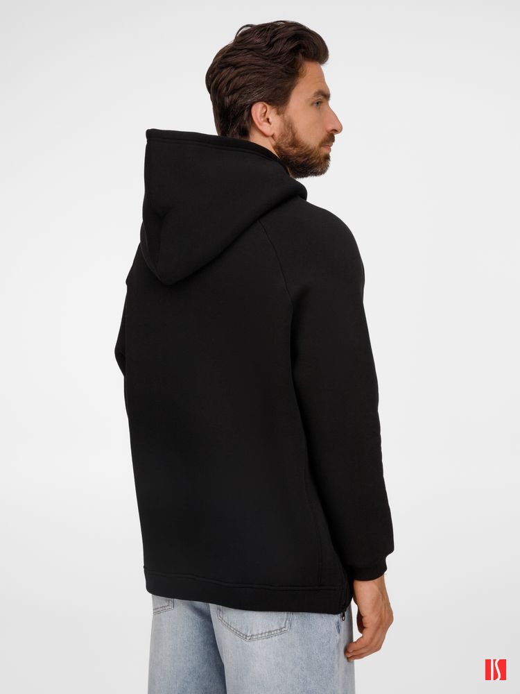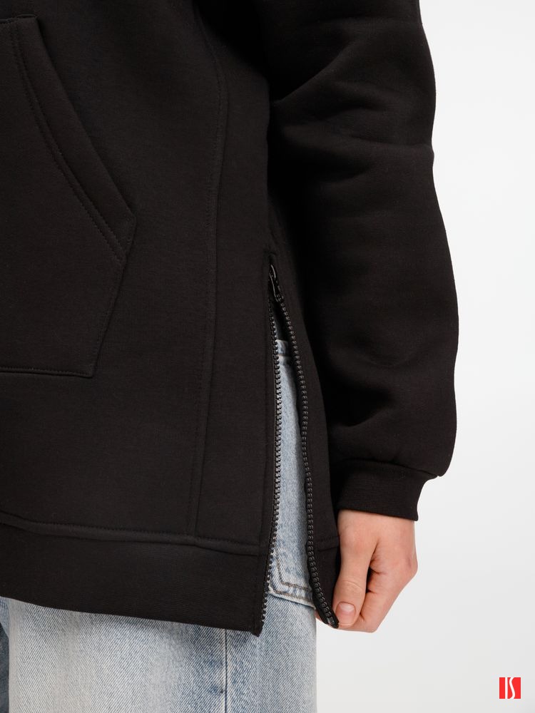 Заказать с нанесением логотипа от компании «Синтезис». Худи унисекс удлиненного силуэта с молниями в боковых швах.