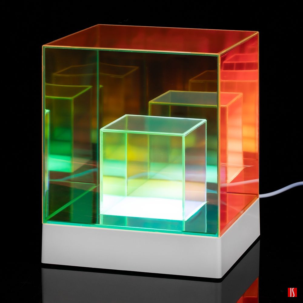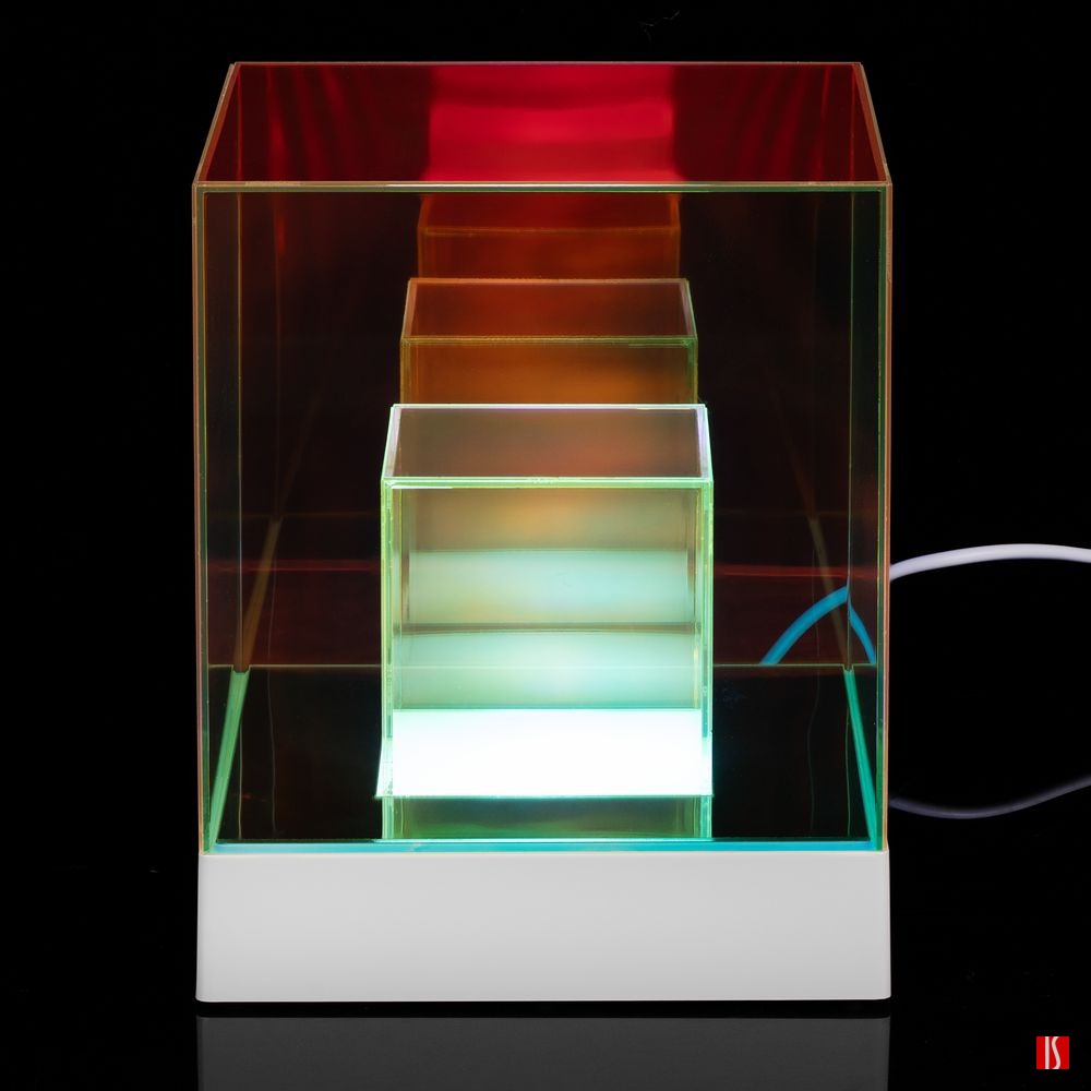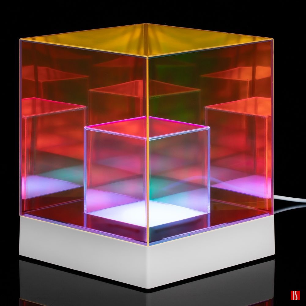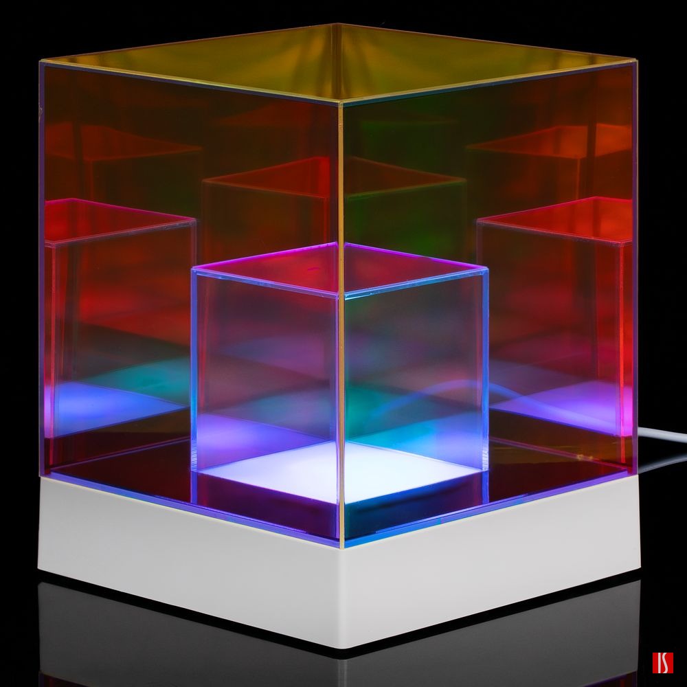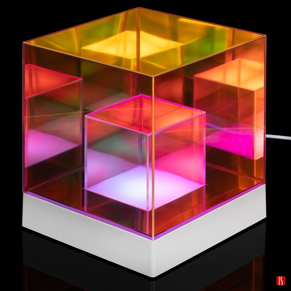Cubini — интерьерный светильник с разноцветной подсветкой и удивительным оптическим эффектом. Разные оттенки граней и их множественные отражения мгновенно притягивают взгляд, заставляя рассматривать кубик снова и снова.