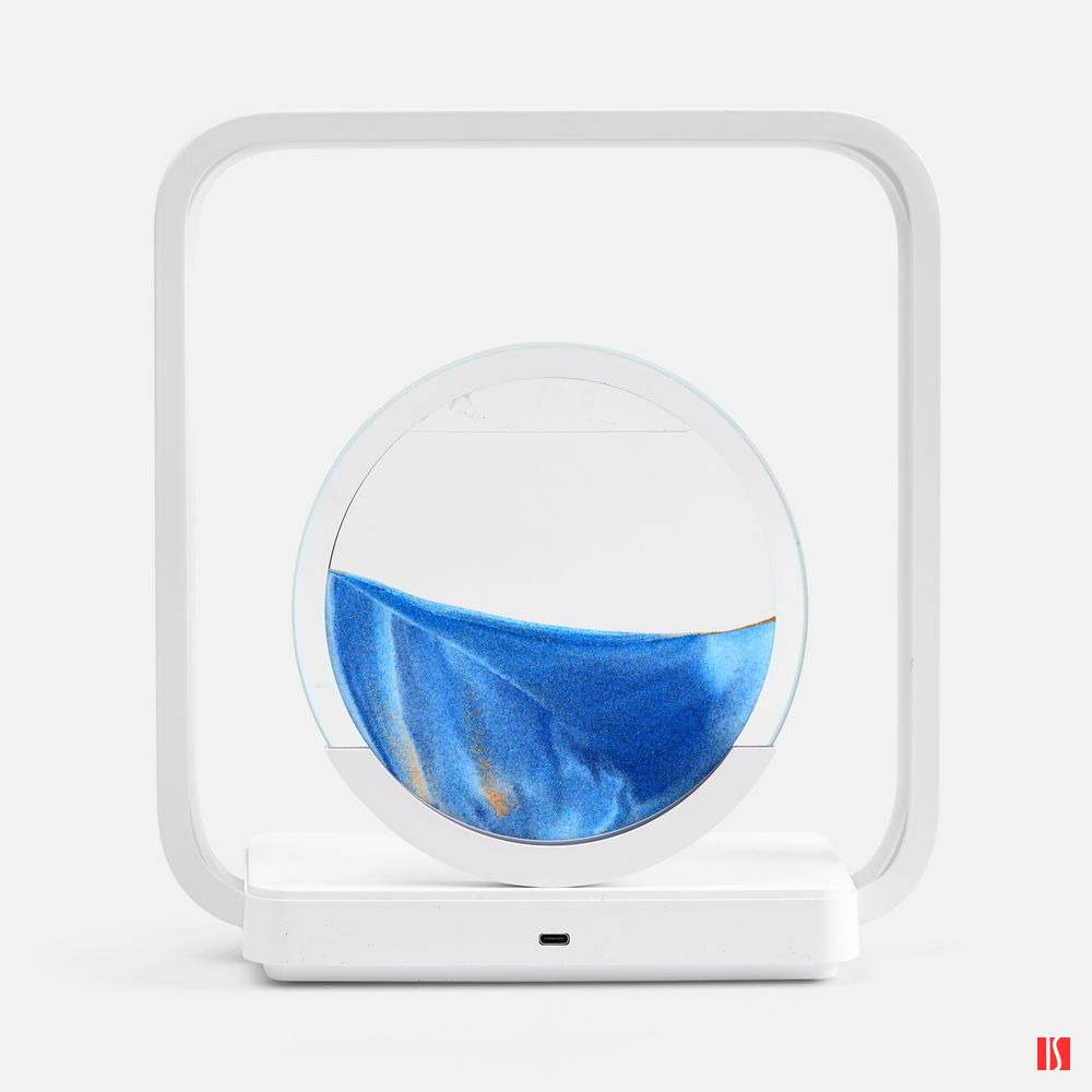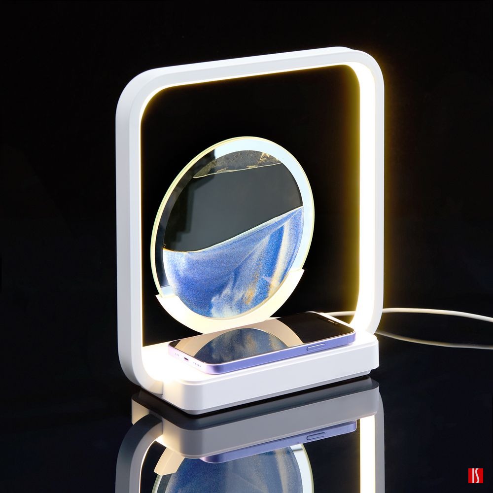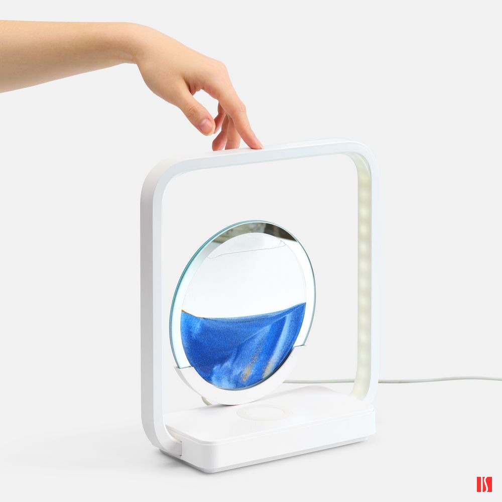 Sandflow — это одновременно и интерьерный светильник, и песочная картина-антистресс, и станция быстрой беспроводной зарядки для телефона.