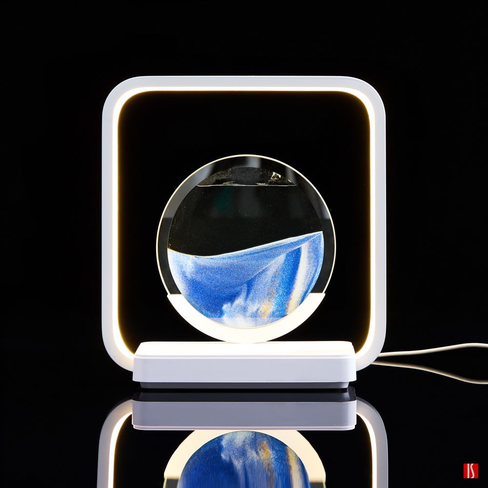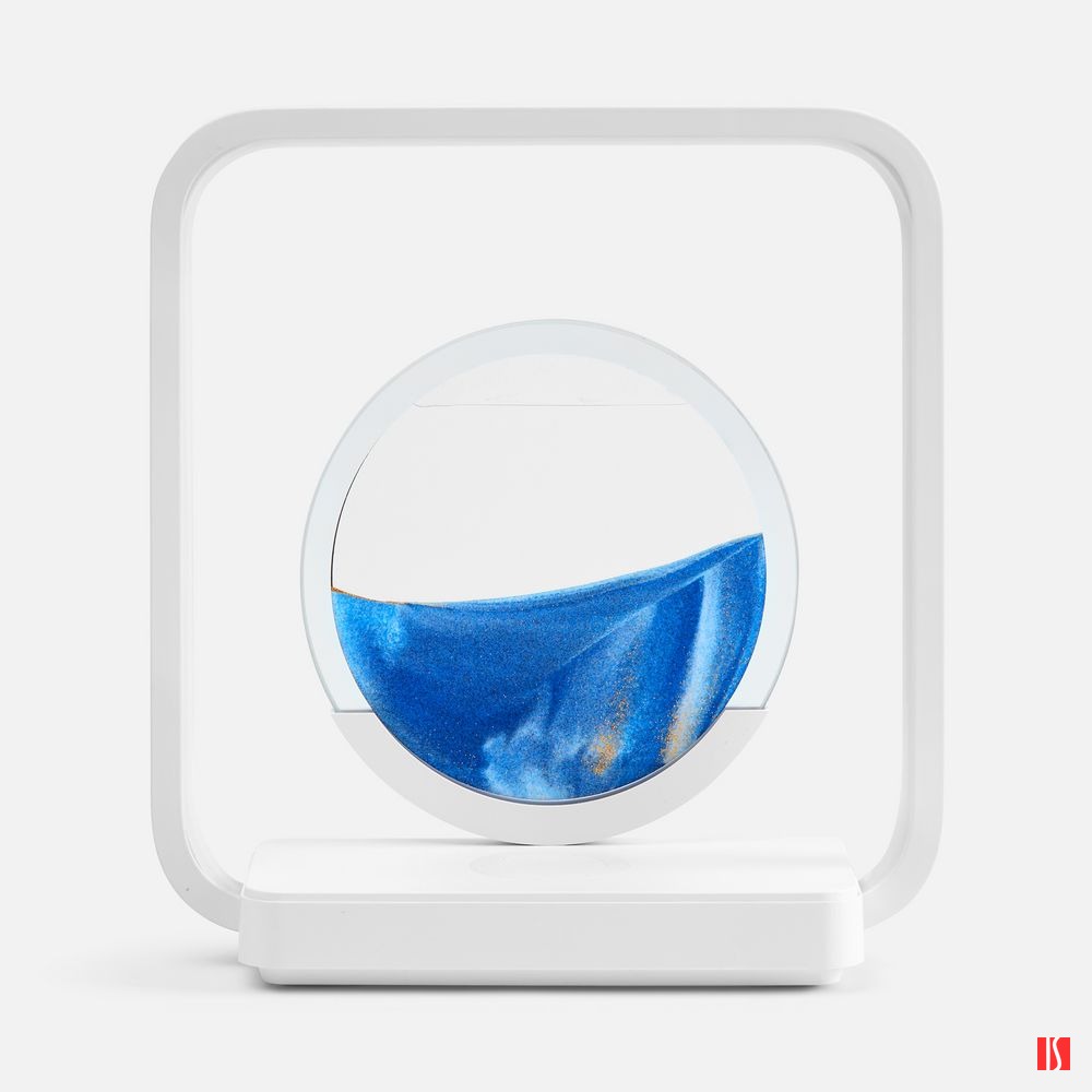 Если перевернуть круглую стеклянную вставку с песком, можно расслабленно понаблюдать за плавным перемещением песчинок в жидкости. Такой полезный для глаз антистресс с легкостью успокоит во время напряженного рабочего дня. Регулируемая подсветка внутри рамки создает еще больший акцент на картине, превращая Sandflow в стильный точечный источник света.