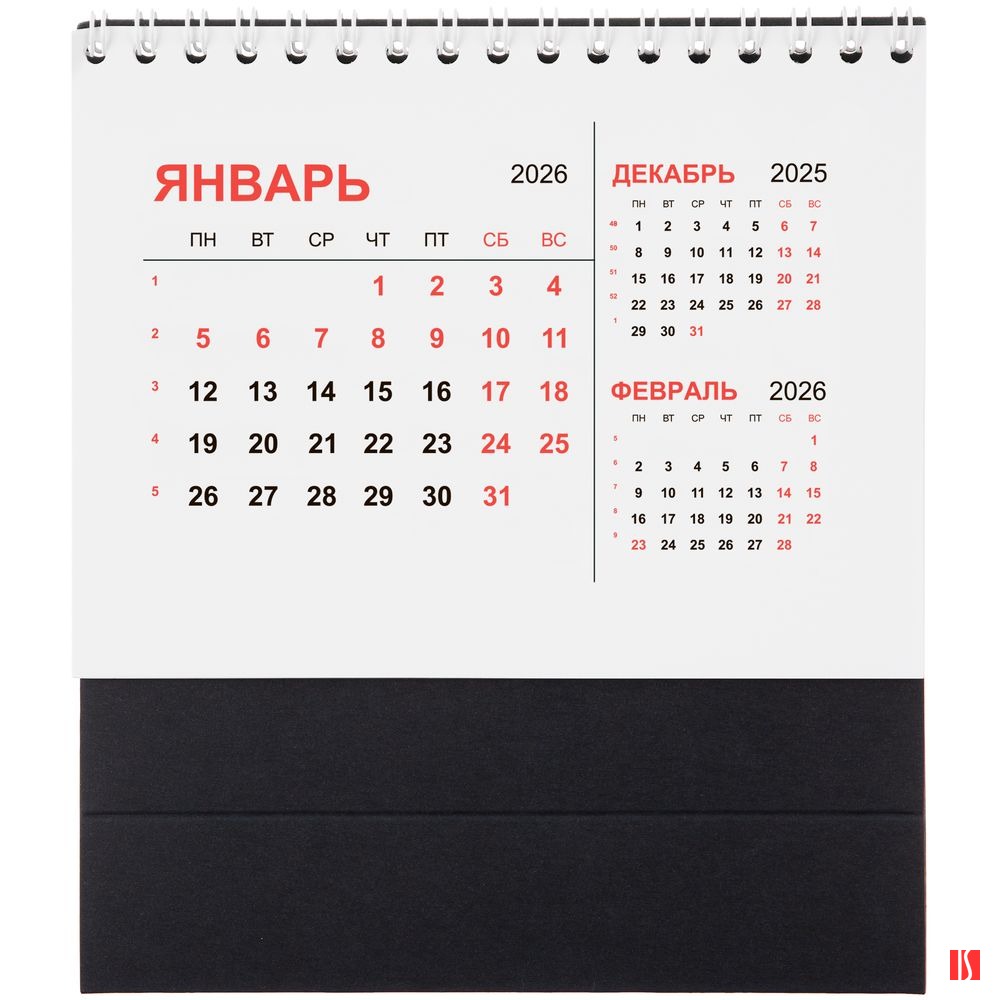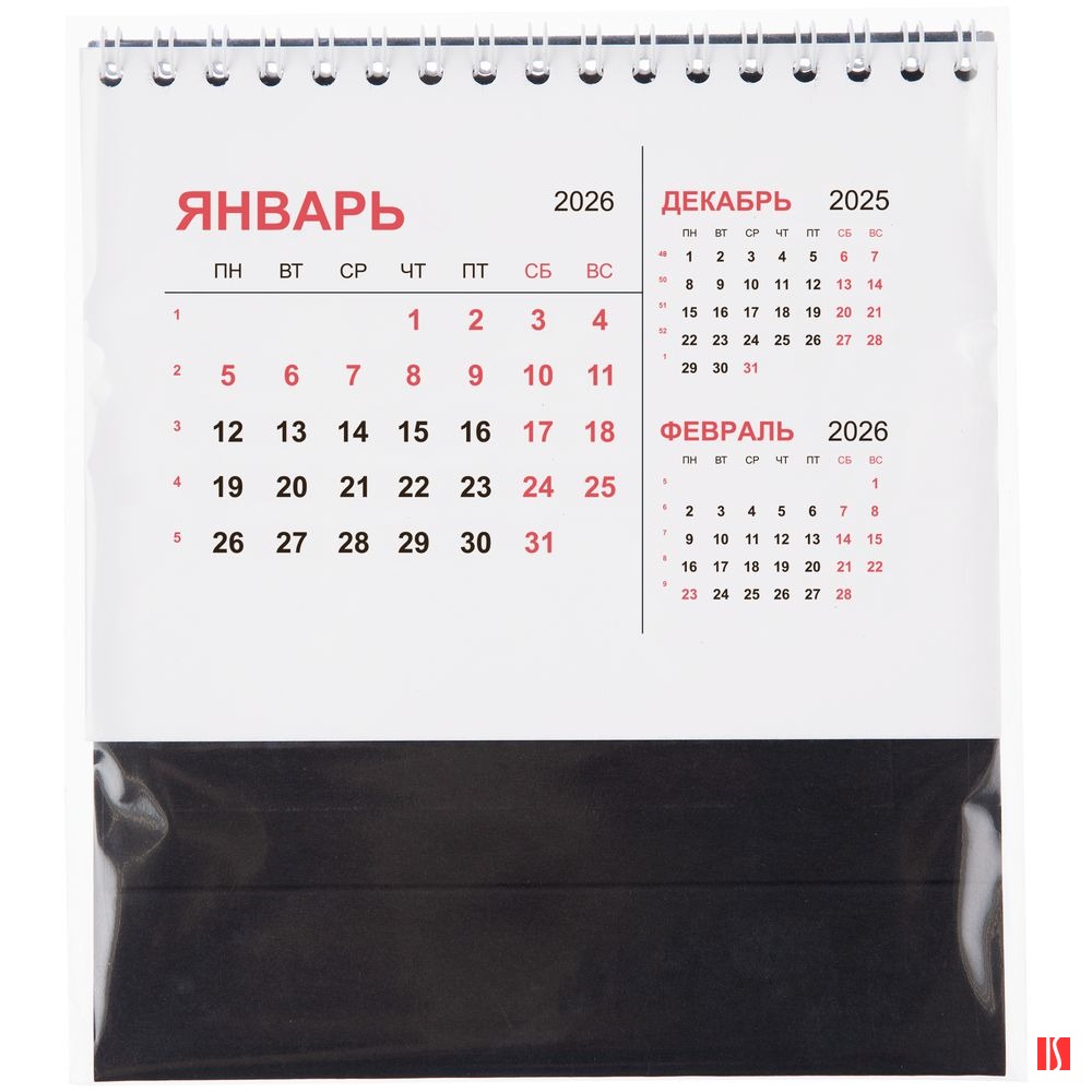 Компактный настольный календарь с датировкой на 2026 год.