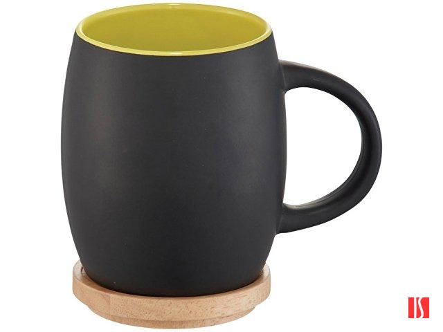 Керамическая чашка Hearth с деревянной крышкой-костером, черный/лайм