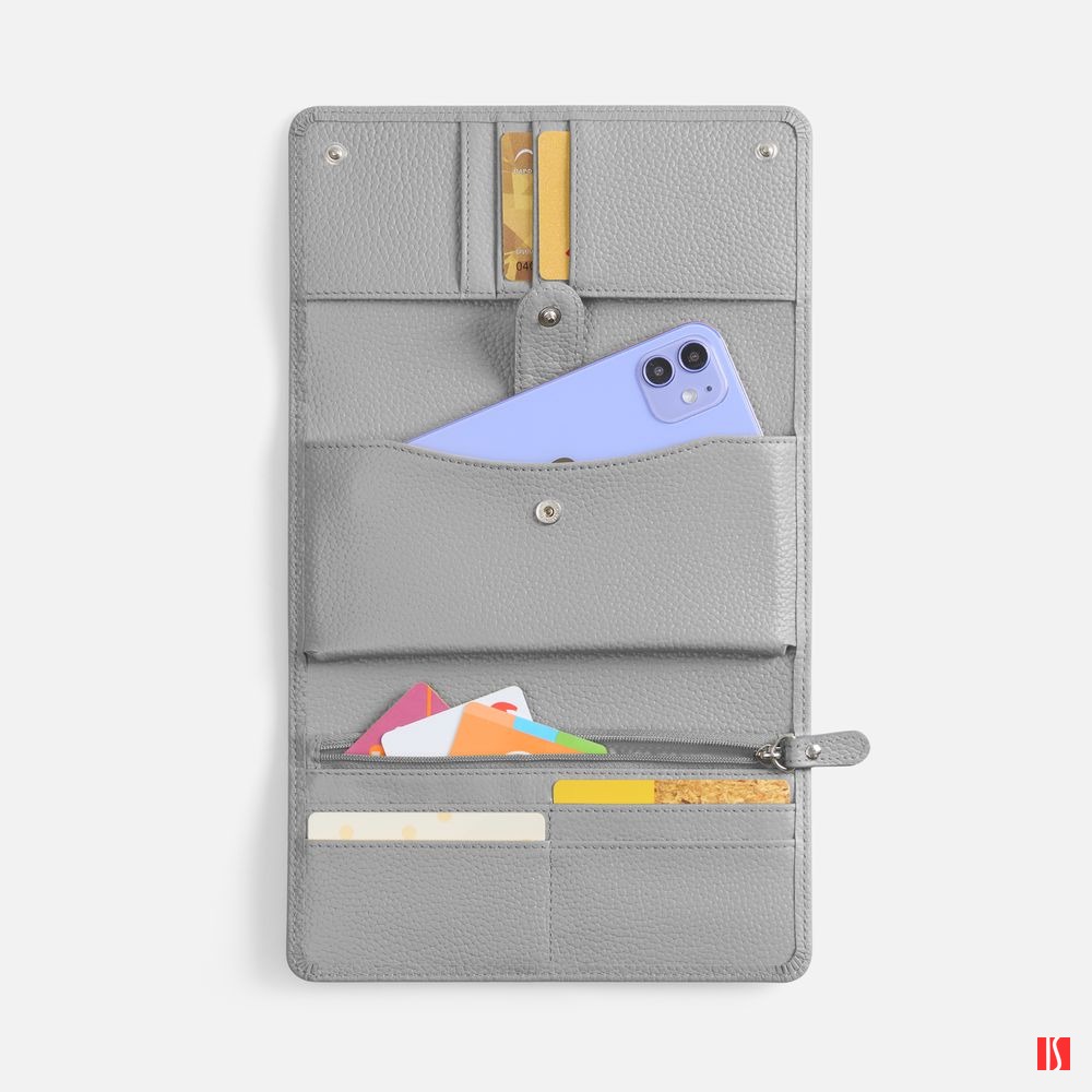 Клатч Unison — утонченное воплощение сдержанной роскоши. Это вместительное и одновременно компактное изделие — и кошелек, и визитница, и мини-сумочка со множеством отделений для самого главного, в том числе и смартфона. Лаконичное и продуманное исполнение делает клатч универсальным повседневным аксессуаром, который будет уместен и на деловой встрече, и на вечернем мероприятии.