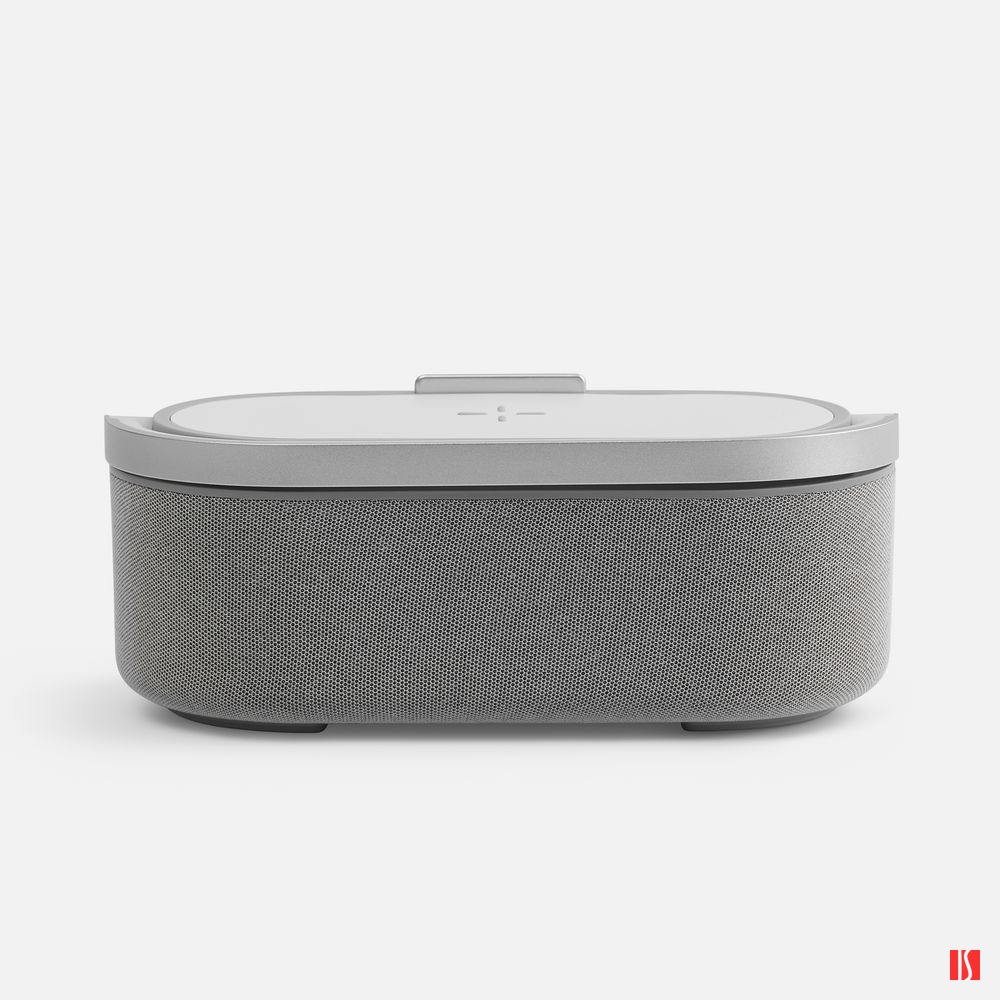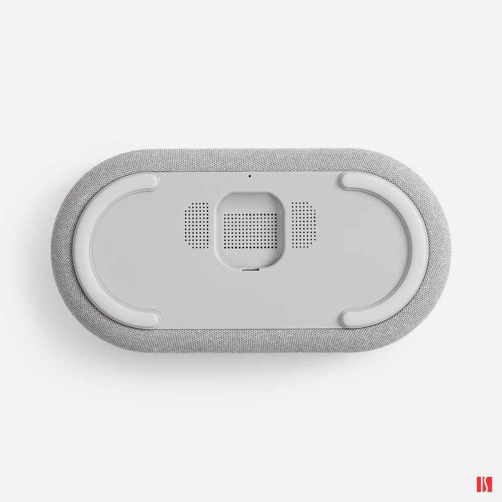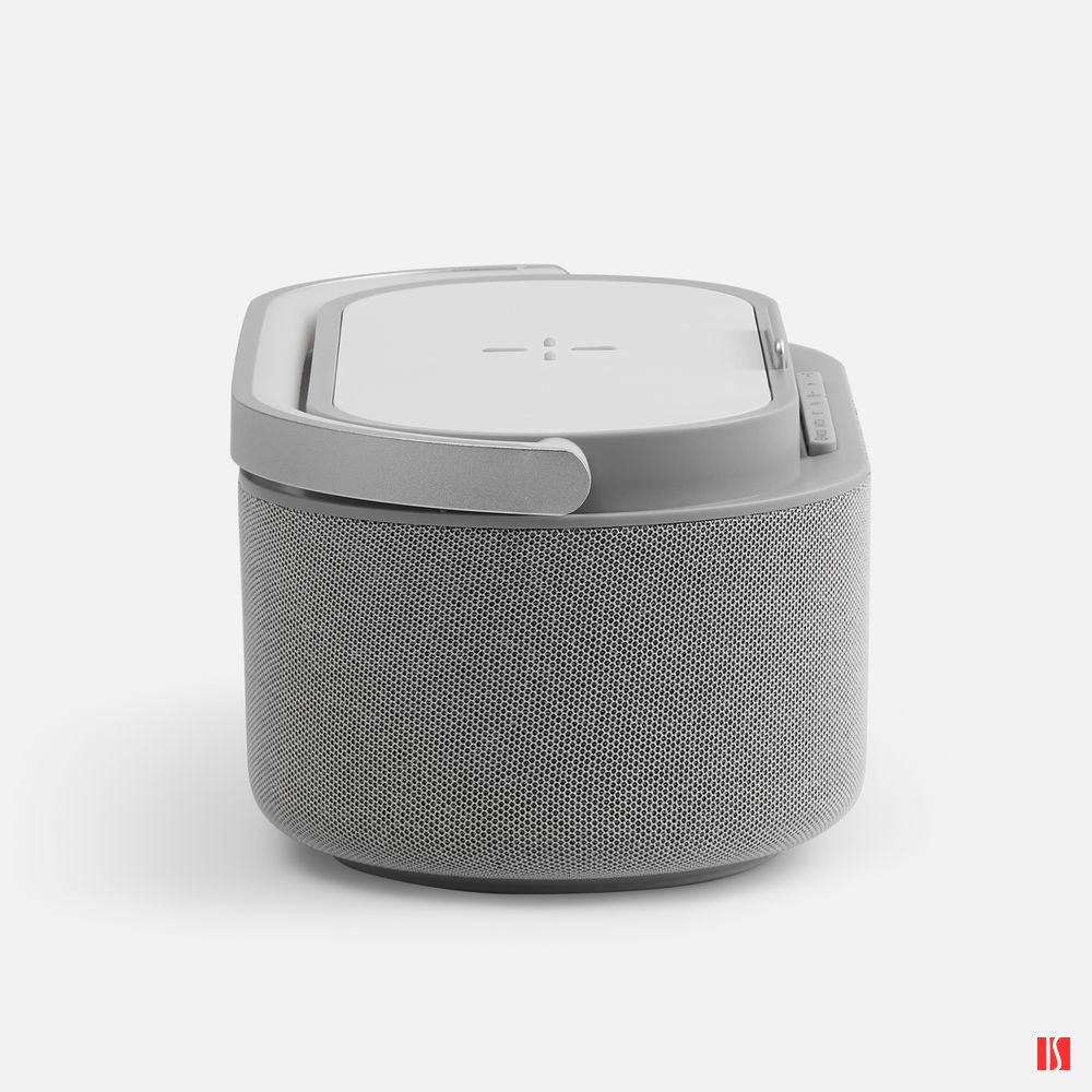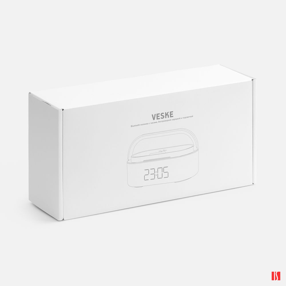 Veske — это Bluetooth-колонка с электронными часами, площадкой для беспроводной зарядки смартфона и подсветкой.
