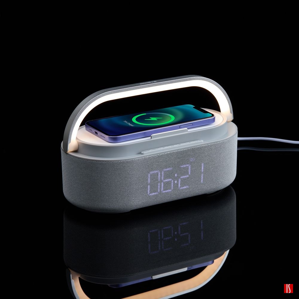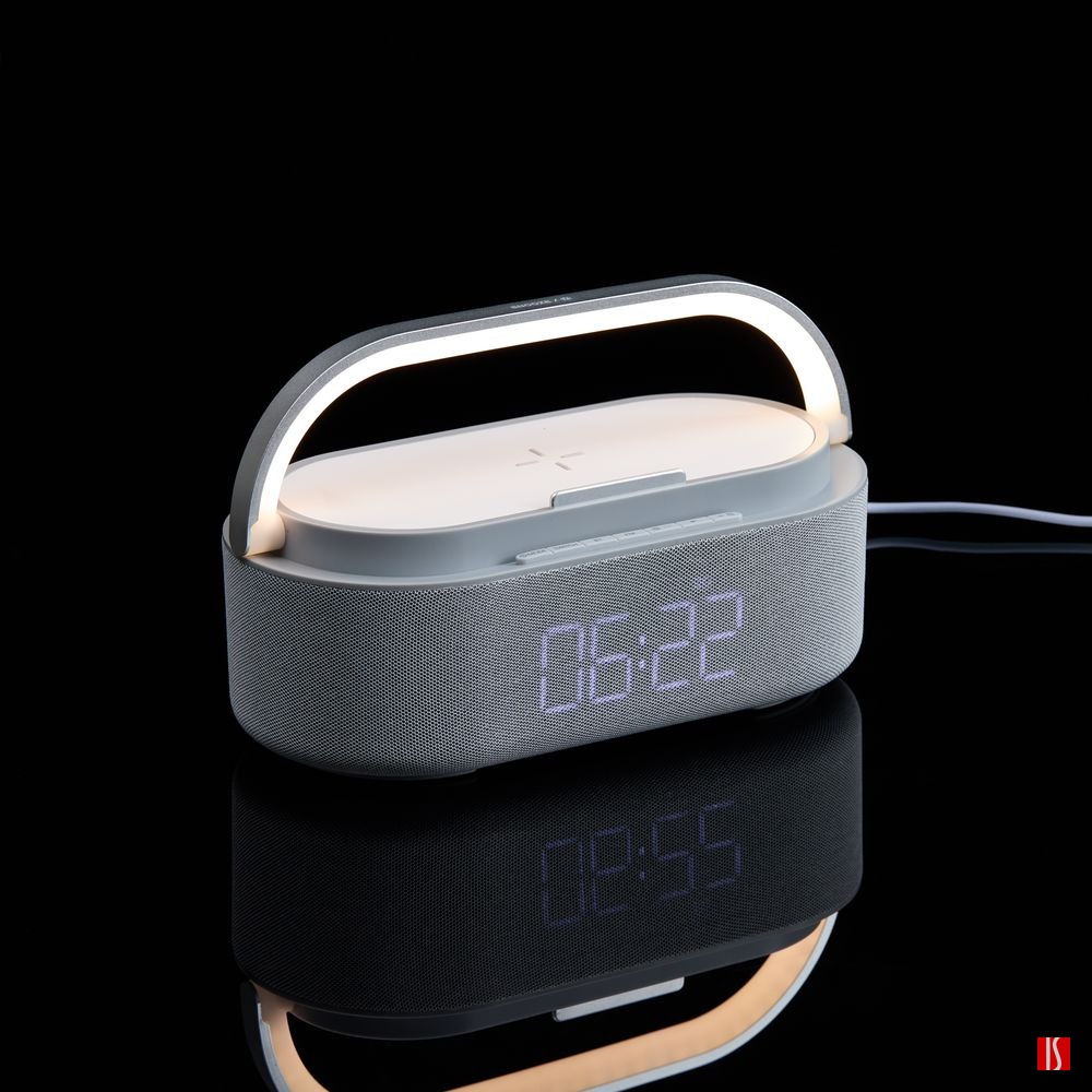 Колонка с часами и беспроводной зарядкой Veske ver.2, серая