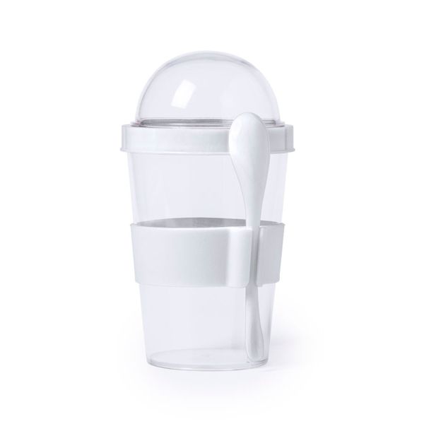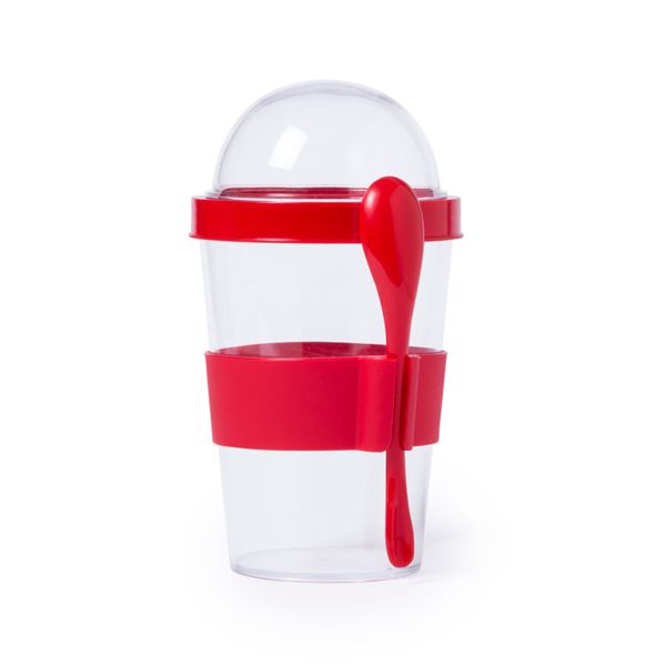 Контейнер для еды YOPLAT с ложкой, красный, 420 мл, 16,3х9см, пластик
