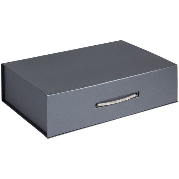 Коробка выполнена из переплетного картона, кашированного дизайнерской бумагой Galaxy Metallic, с крышкой на магните.