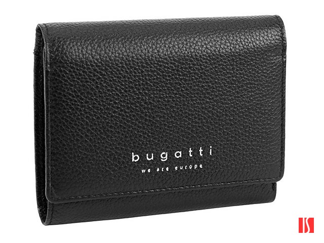 Кошелёк женский BUGATTI Linda, чёрный, натуральная воловья кожа, 12х3х9,5 см