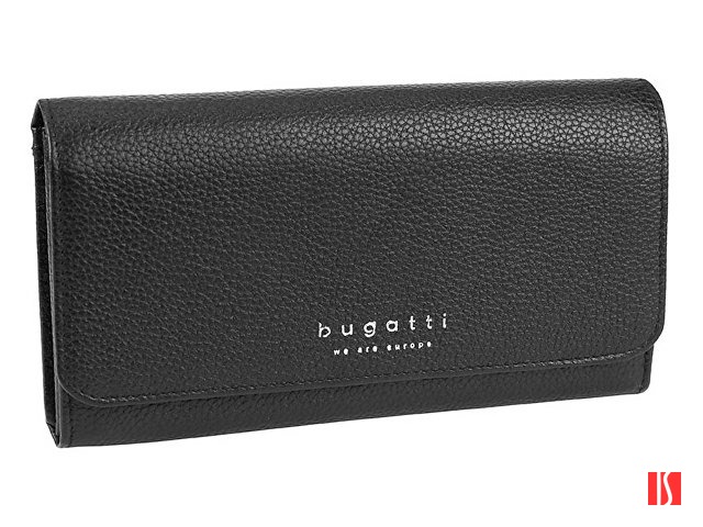 Кошелёк женский BUGATTI Linda, чёрный, натуральная воловья кожа, 19х3х10 см