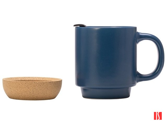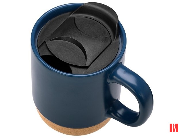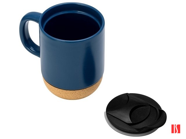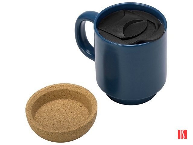 Кружка Denpasar с пробковым дном и крышкой, цветная с двух сторон, бензиновый синий