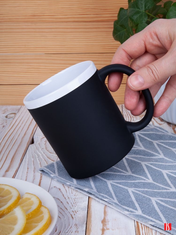 Кружка классической формы StopSpot привлекает внимание своим дизайном и покрытием. Яркая матовая поверхность выигрышно контрастирует с глянцевым белым ободком — так кружка выглядит необычно, а еще меньше пачкается во время эксплуатации.