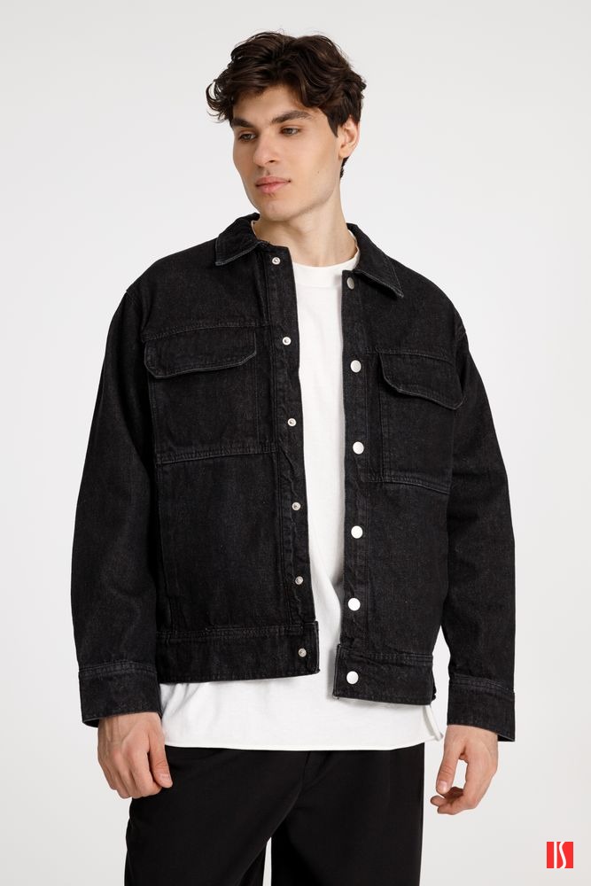 Джинсовая куртка унисекс на кнопках свободной посадки.