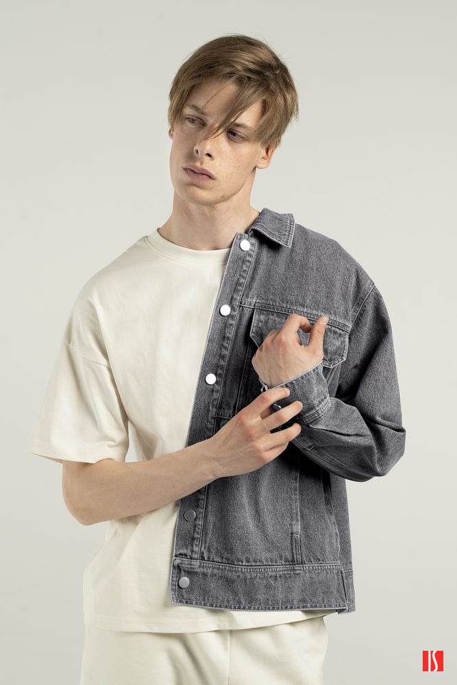 Джинсовая куртка унисекс на кнопках свободной посадки.