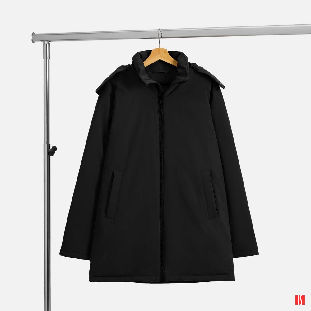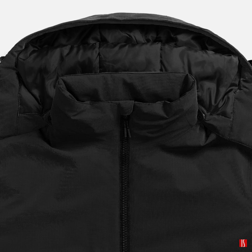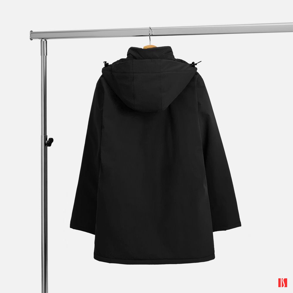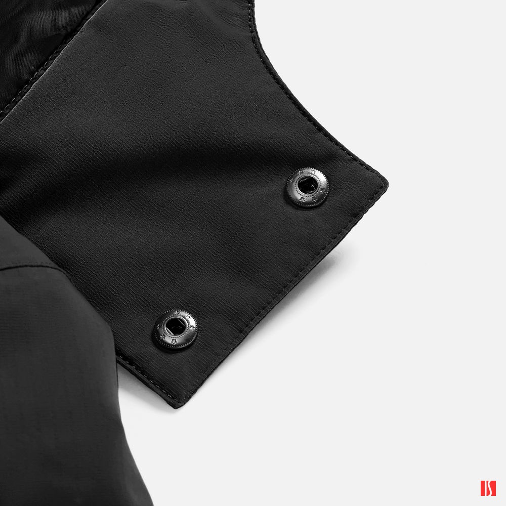 - Отстегивающийся капюшон с утяжкой и кнопками для плотного прилегания и защиты горла