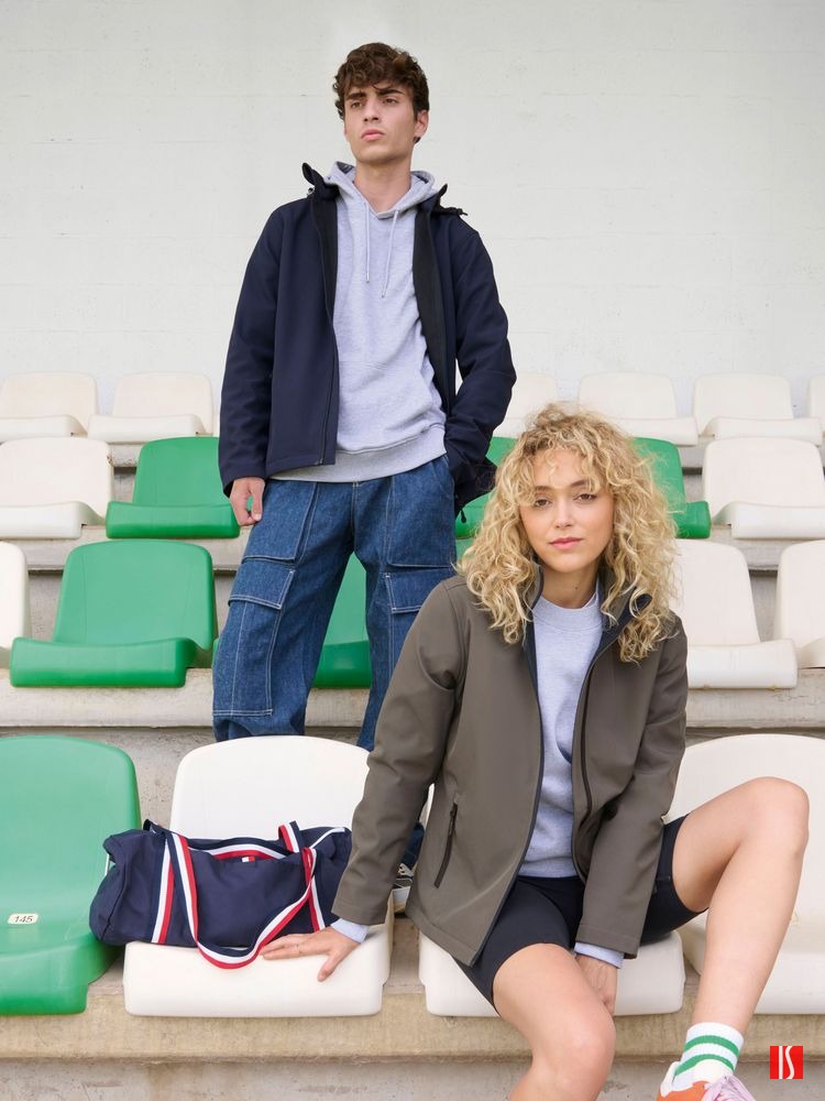 внешняя сторона - переработанный полиэстер, 100%; софтшелл, плотность 280 г/м²; изнанка - полиэстер 100%, флис