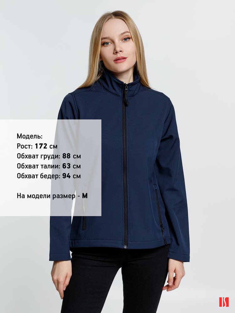 Заказать с нанесением логотипа от компании «Синтезис». Женская куртка из дышащего двухслойного материала софтшелл.