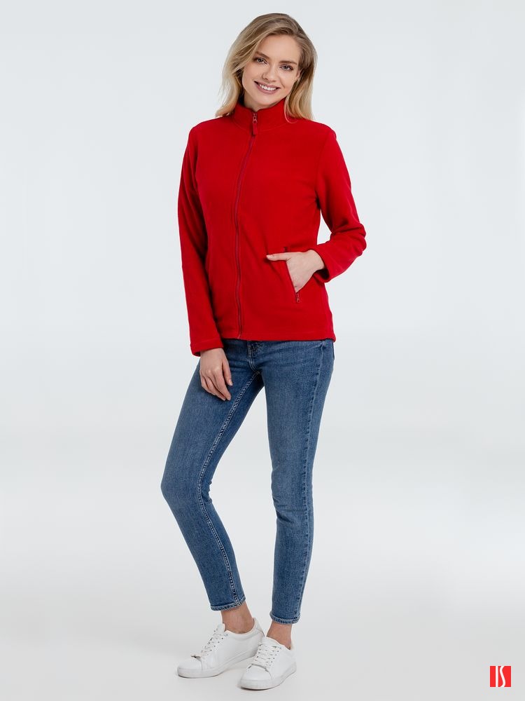 Заказать с нанесением логотипа от компании «Синтезис». Женская флисовая куртка на молнии.