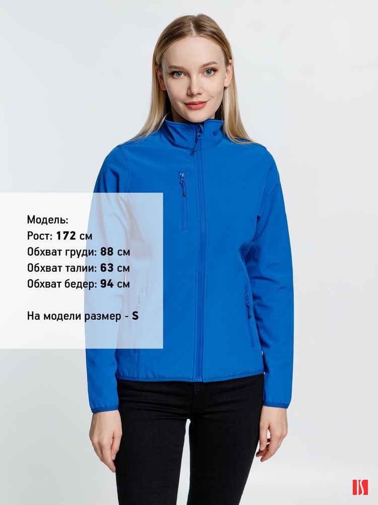 Заказать с нанесением логотипа от компании «Синтезис». Женская водостойкая куртка из дышащего трехслойного материала софтшелл.