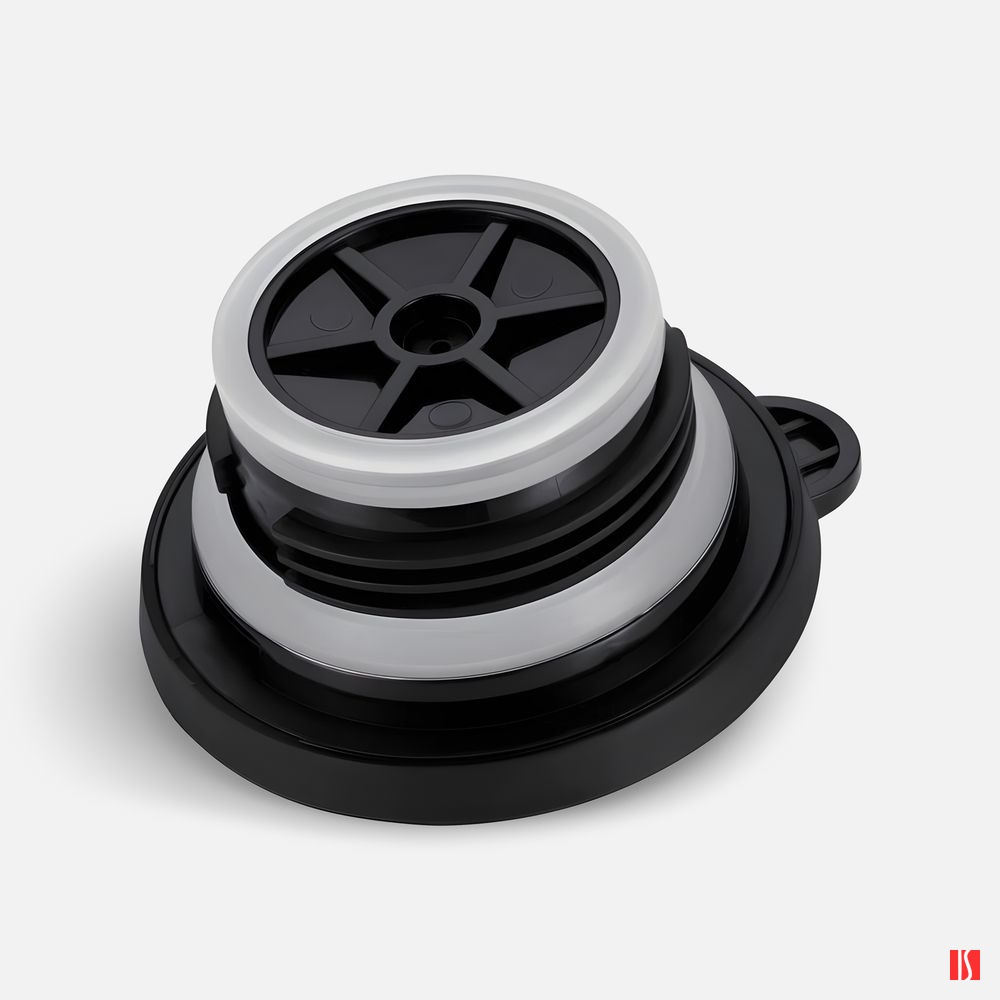 Корпус из нержавеющей стали с матовым покрытием гарантирует долговечность, высокую прочность и привлекательный внешний вид, при этом он безопасен для здоровья и окружающей среды. Материал не влияет на вкус напитка, а благодаря современной вакуумной термоизоляции между стенками сохраняется стабильная температура содержимого в течение 24 часов. Удобный кнопочный клапан на крышке обеспечивает легкую подачу жидкости через носик одним нажатием.