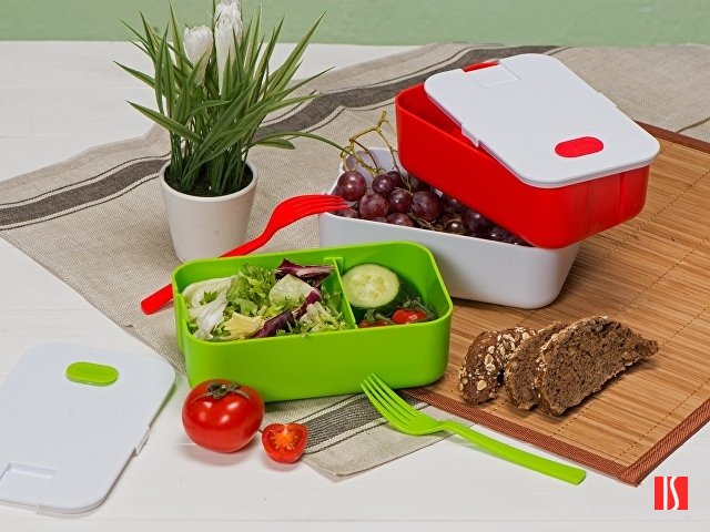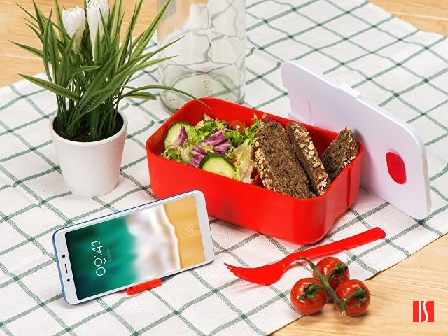 Ланч-бокс "Neo" можно брать с собой на работу, в школу, университет и командировки. Внутри прочной пластиковой емкости находятся снимаемая перегородка и вилка. Крышка с клапаном препятствует выпадению продуктов из бокса. Чтобы облегчить открытие контейнера, сначала выпустите воздух из него, потянув за силиконовый клапан на крышке. Деталь для фиксации крышки контейнера выполняет дополнительную функцию подставки для телефона, что особенно понравится тем, кто привык смотреть видео или читать книги во время перекуса. Ланч-бокс "Neo" можно разогревать в микроволновой печи, предварительно сняв крышку контейнера. Также разрешается использовать в посудомоечной машине и морозильной камере.