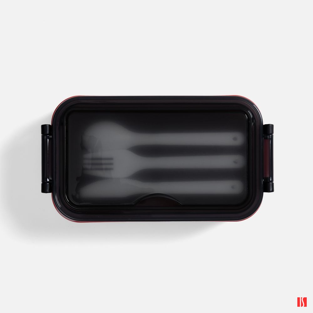 Удобная конструкция с крышкой на защелках обеспечивает надежную фиксацию. Специальное отделение под крышкой позволяет хранить столовые приборы, освобождая дополнительное пространство в сумке.