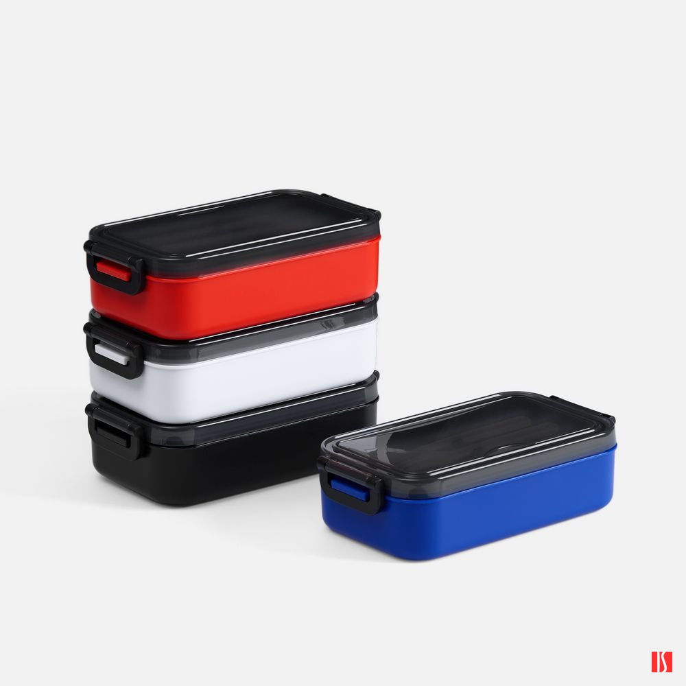 Удобная конструкция с крышкой на защелках обеспечивает надежную фиксацию. Специальное отделение под крышкой позволяет хранить столовые приборы, освобождая дополнительное пространство в сумке.