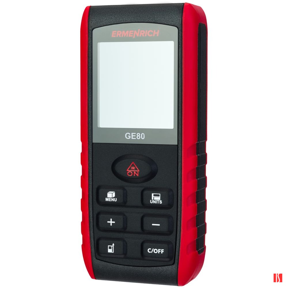 Ermenrich Reel GE80 — лазерная рулетка для самого широкого применения при измерении линейных размеров, площадей и объемов помещений, зданий и сооружений.