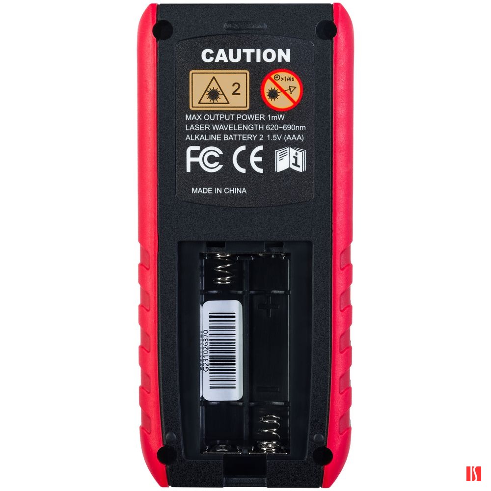Прибор легко удерживается одной рукой, эргономично расположенные кнопки облегчают управление. Питание устройства осуществляется от 2 батареек ААА, один комплект обеспечивает более 5000 измерений. Функция автоотключения помогает экономить энергию, а индикатор низкого заряда батареи подскажет, когда необходимо заменить источники питания.Лазерная рулетка с ручным (однократный замер) и автоматическим (непрерывное сканирование) режимами работы.- Функция измерения длины: диапазон измерения длины — 0,05-80 м, единицы измерения длины — метры, футы, дюймы, точность измерений — ±2 мм