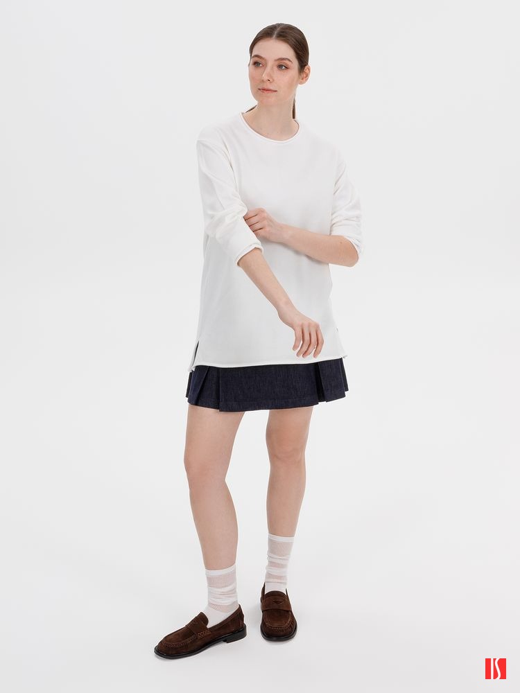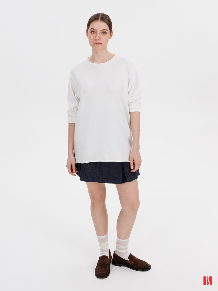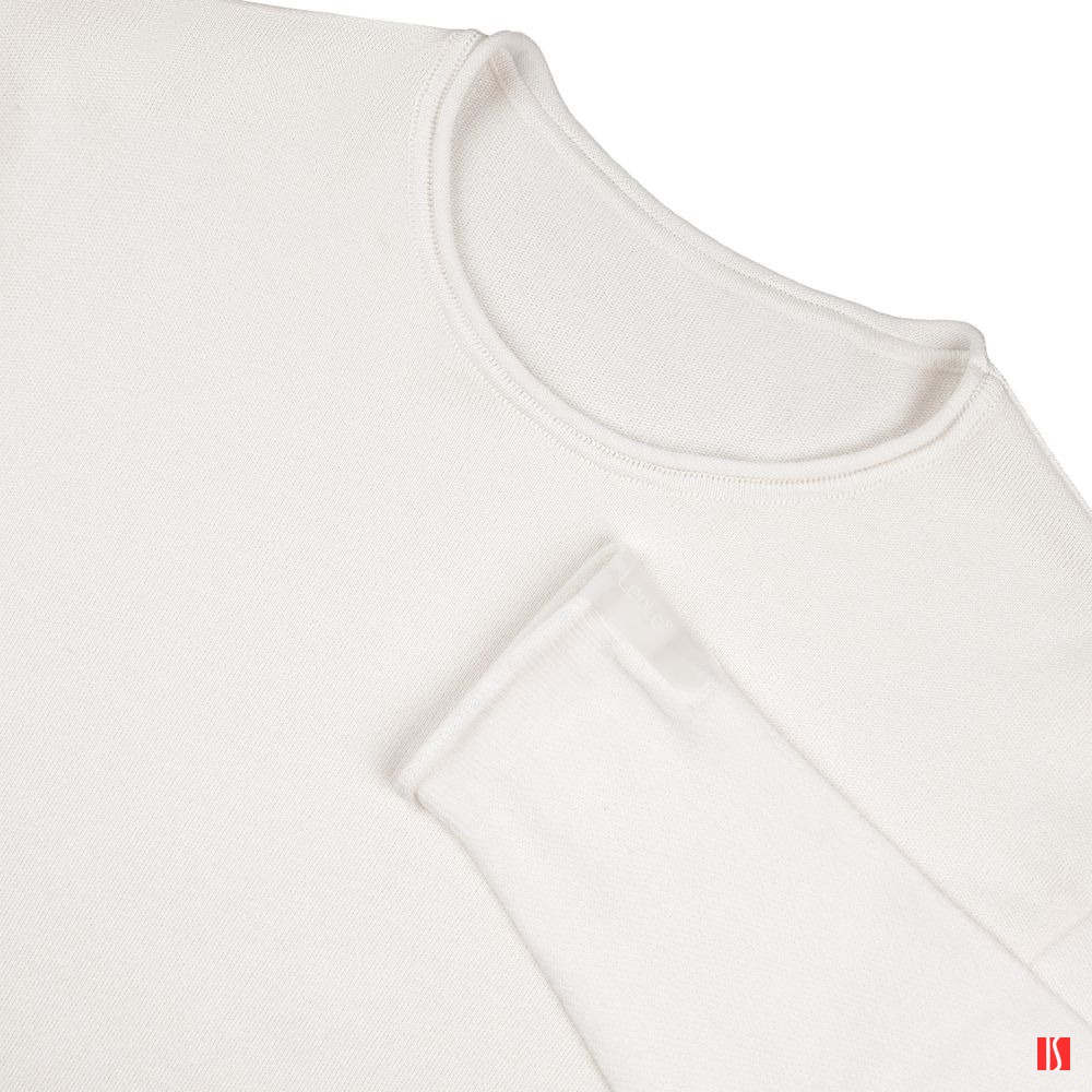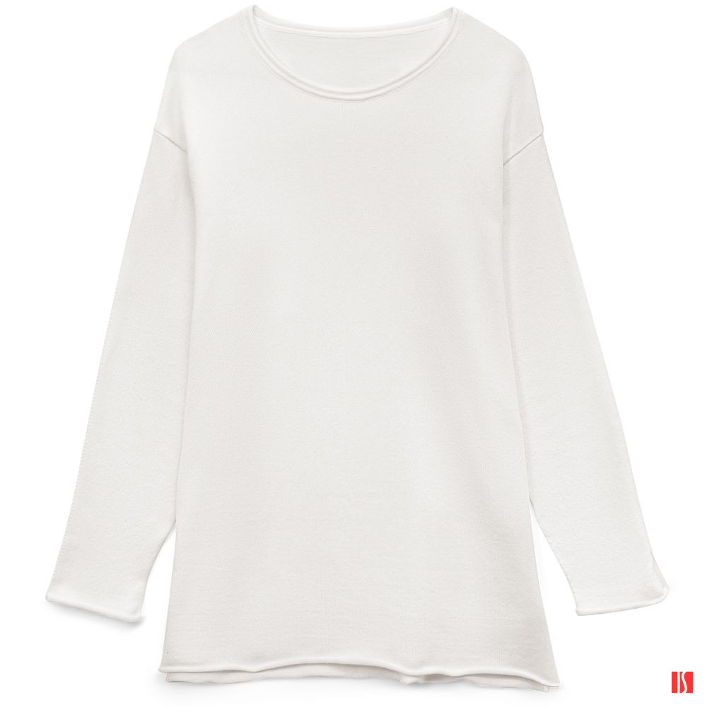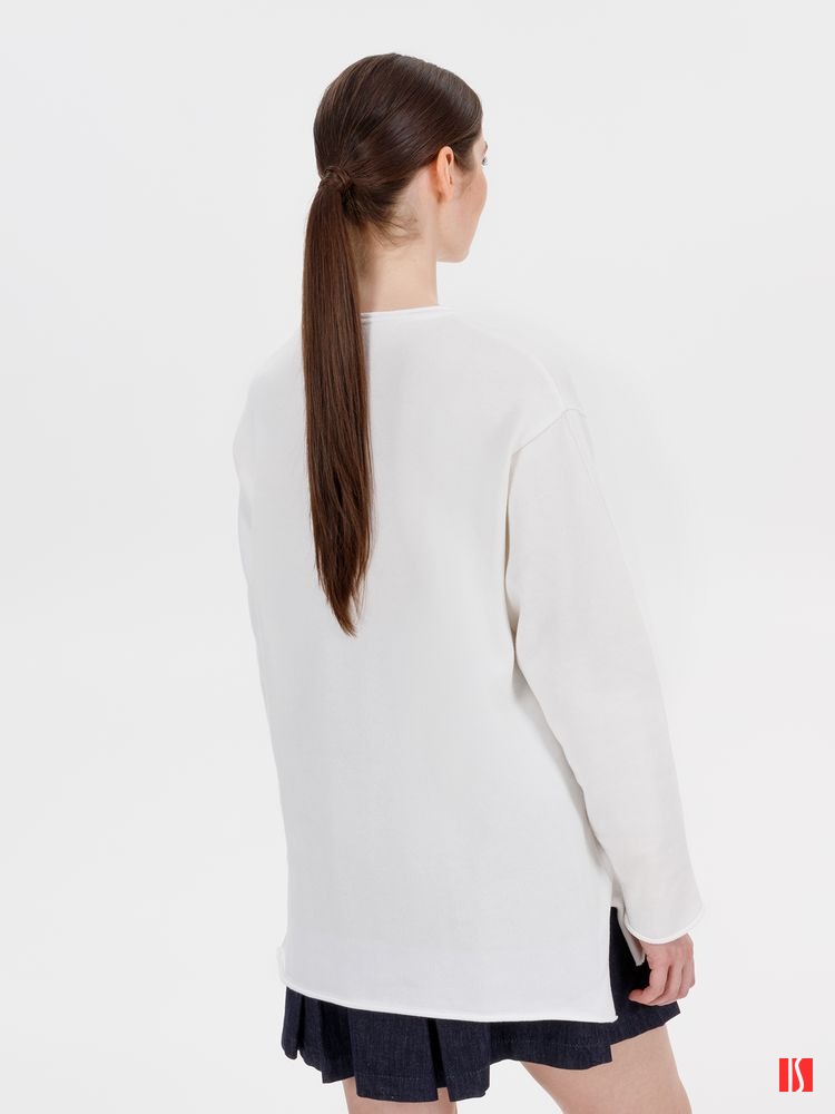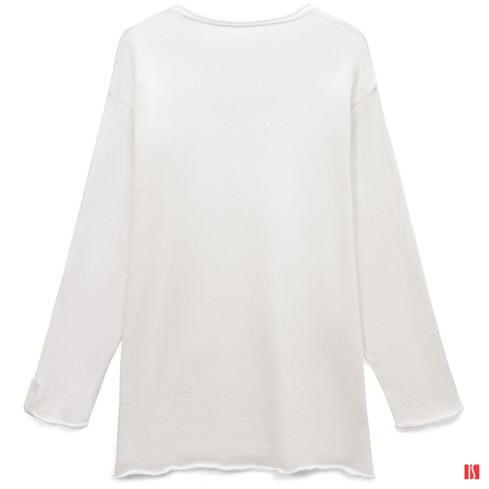 Лонгслив Fuori средней плотности с широким воротом, спущенной линией плеча и свободно подворачивающимися краями по низу, на рукавах и вороте, которые добавляют модели еще большей расслабленности. Прозрачная бирка с логотипом бренда на рукаве не нарушает минималистичности образа.