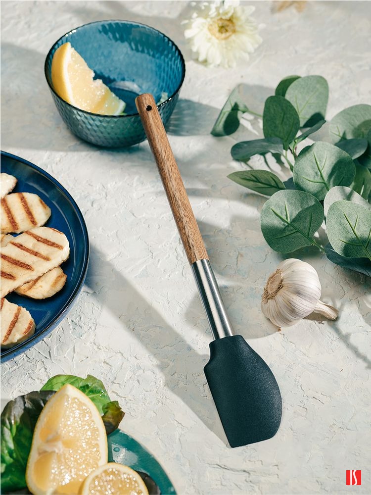 лопатка - нержавеющая сталь, силикон; ручка - дерево, акация