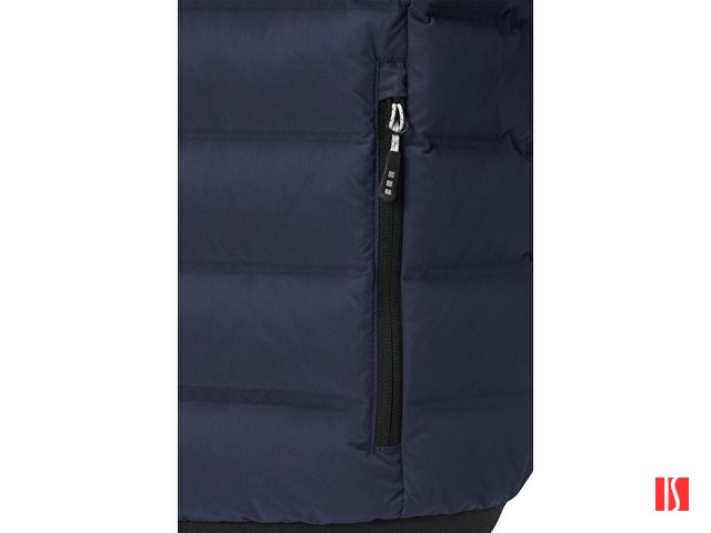 Мужской утепленный пуховик. Стежка с утеплителем. Утеплитель из переработанного пуха, сертифицированного согласно GRS и RDS. Внутренний штормовой клапан с защитой подбородка. Эластичные манжеты и нижний край из гладкого трикотажа. Передние карманы с застежкой-молнией. Бегунки застежки-молнии с простой фиксацией. Фирменная резиновая петля для вешалки. Главный лейбл нанесен методом термоприклеивания, удобным для размещения рисунков на ткани. Заказать с нанесением логотипа от компании «Синтезис».