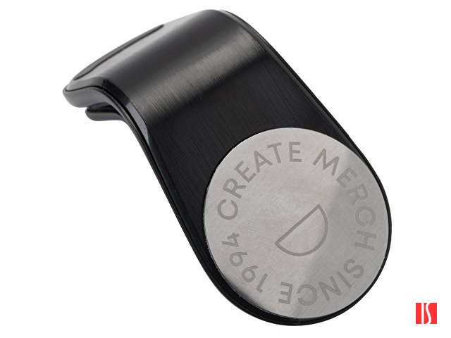 Заказать с нанесением логотипа от компании «Синтезис». Магнитный держатель для телефона крепится к вентиляционной решетке автомобиля при помощи прищепки, которая снабжена прорезиненными вставками для плотного сцепления с поверхностью. Также в комплекте идут 2 самоклеящиеся стальные пластины. Они крепятся к смартфону.