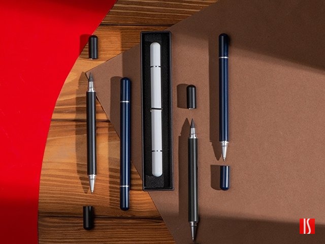 Заказать с нанесением логотипа от компании «Синтезис». Стильный аксессуар 2в1: с одной стороны - ручка, с другой - вечный карандаш, который практически невозможно исписать!