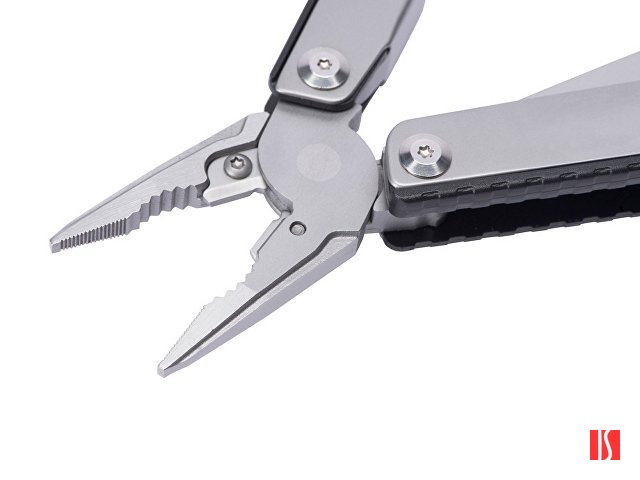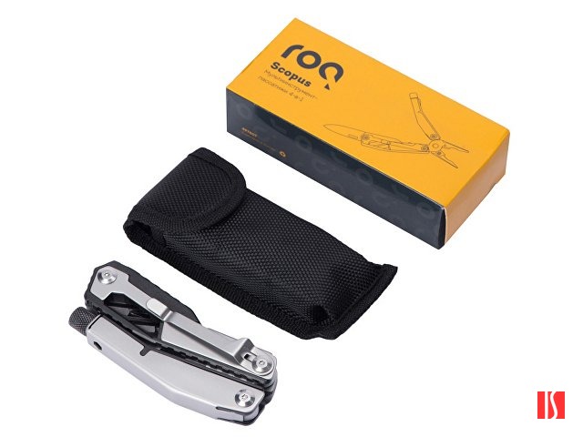 Заказать с нанесением логотипа от компании «Синтезис». Складной нож Scopus от roq выполнен в ассиметричном необычном дизайне, в его составе — среднего размера нож, пассатижи, плоская и крестовая отвертки (биты), шестигранный ключ 5 мм.