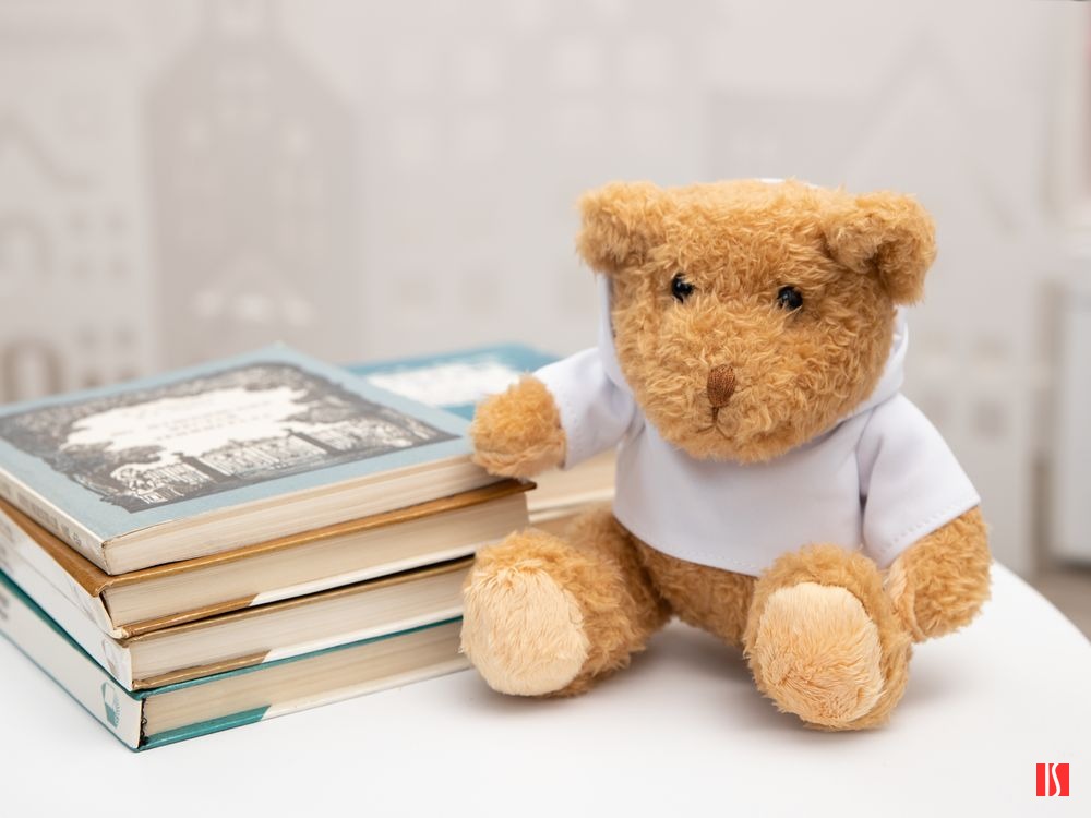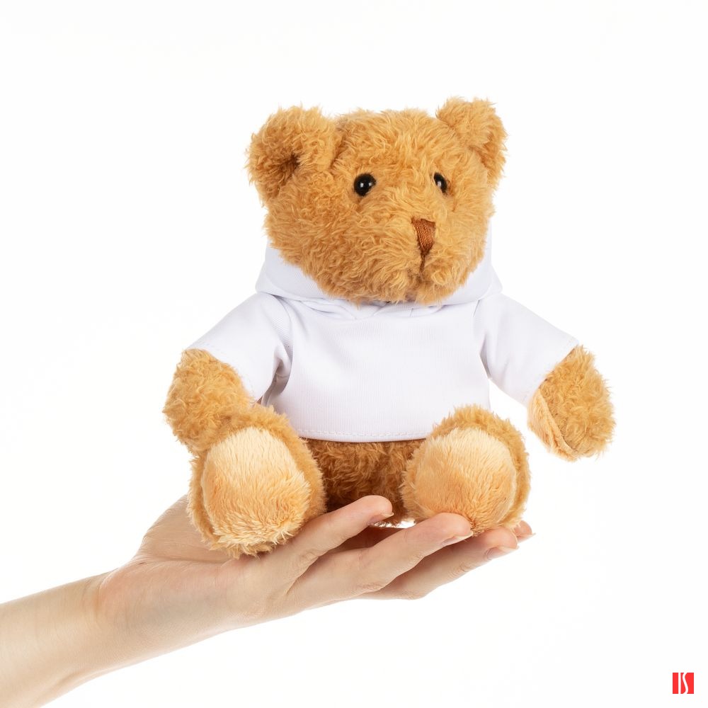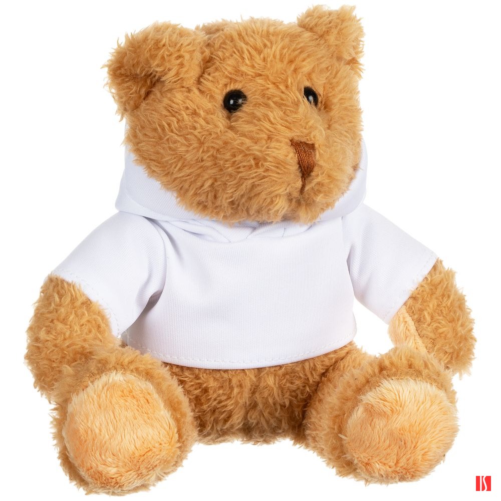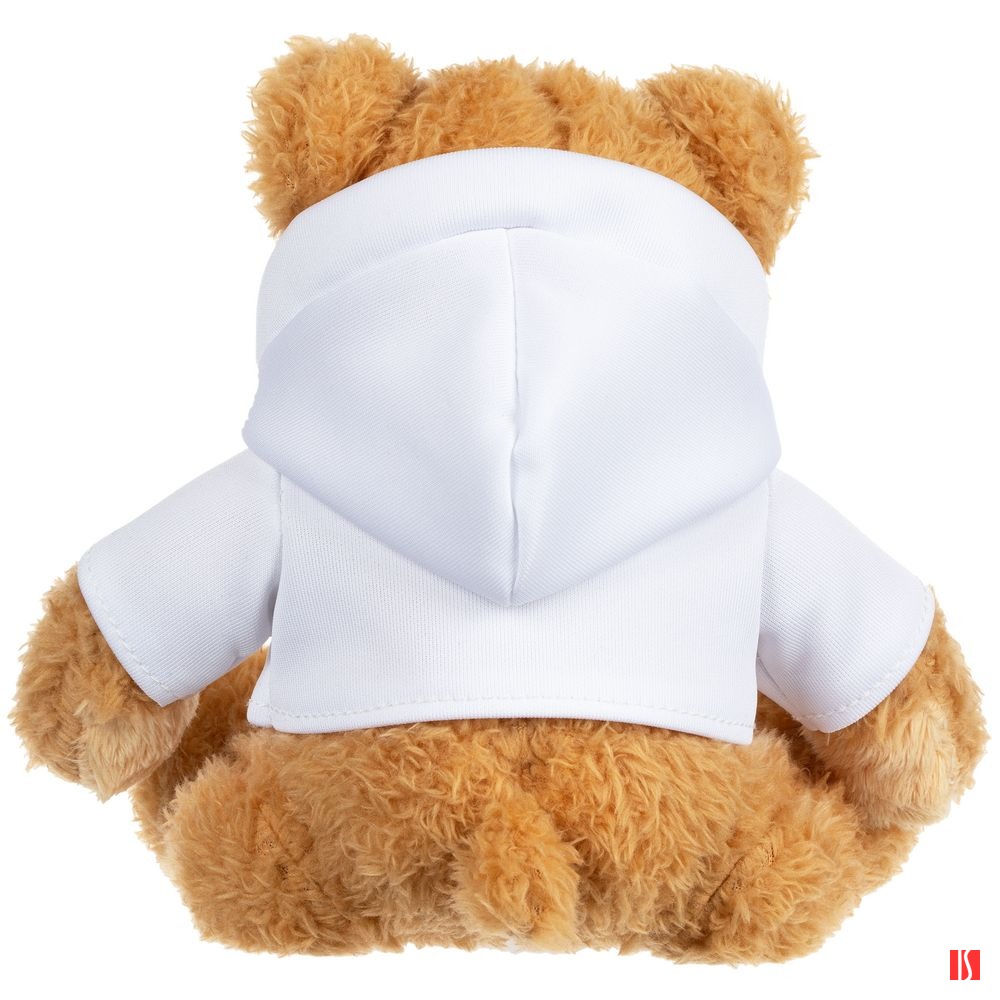 Белое худи позволяет нанести полноцветное изображение — так мишка станет по-настоящему уникальным. Заказать с нанесением логотипа от компании «Синтезис».