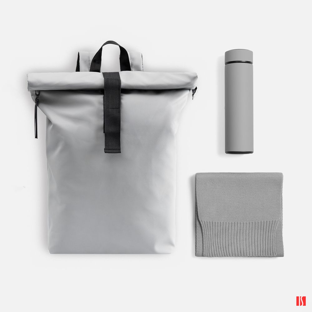 Составляющие набора — шарф и термос — помогут оставаться стильным и, что немаловажно, довольным даже в холодное время года. Модный и практичный рюкзак с удобной регулировкой объема роллтоп всегда подстроится под ситуацию, а потому станет просто незаменим как ежедневно в городе, так и в путешествии.